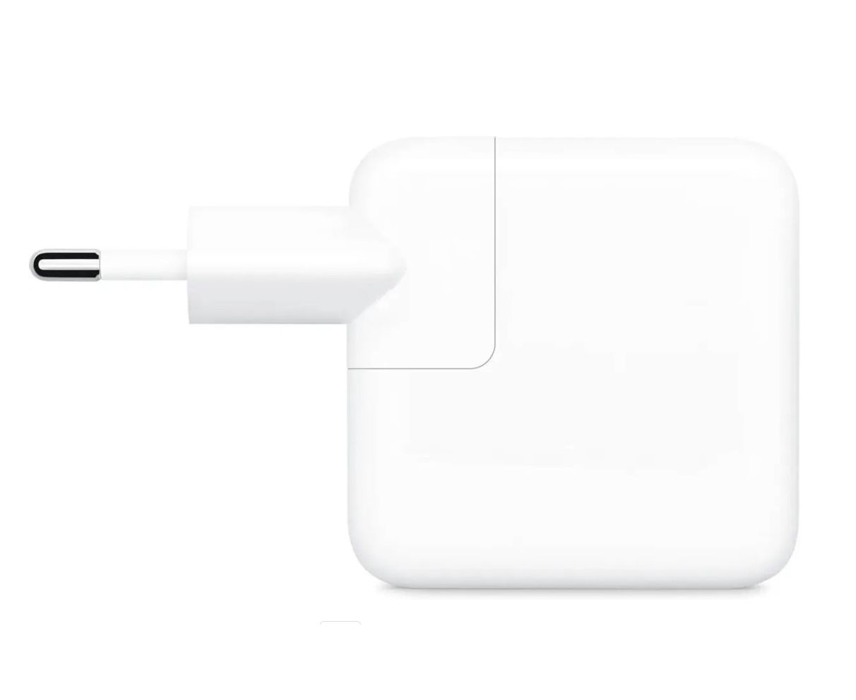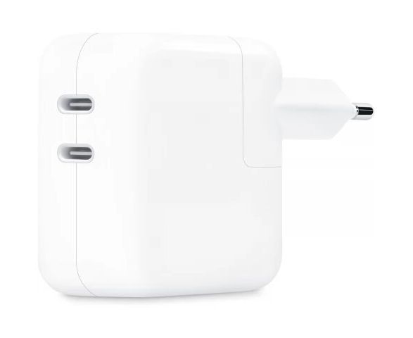 Адаптер питания с двумя портами USB-C мощностью 35 Вт позволяет одновременно заряжать два устройства.
