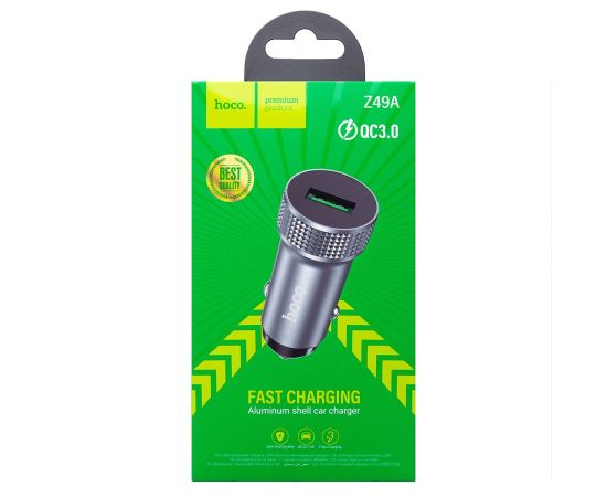 Адаптер Автомобильный Hoco Z49A Level QC3.0 USB/5V/3A (metal gray) (224655)