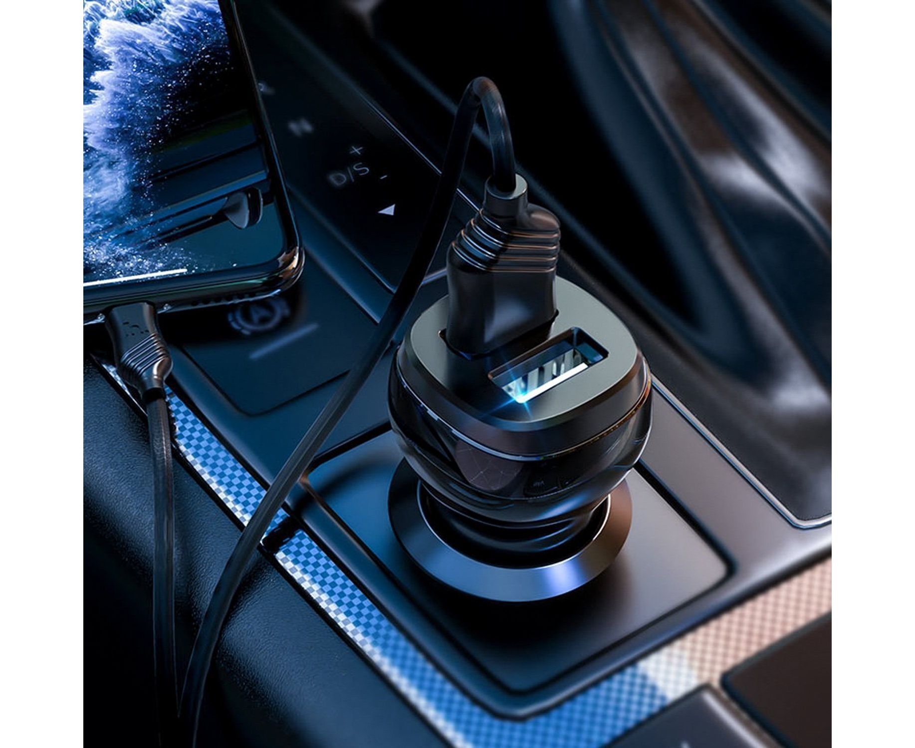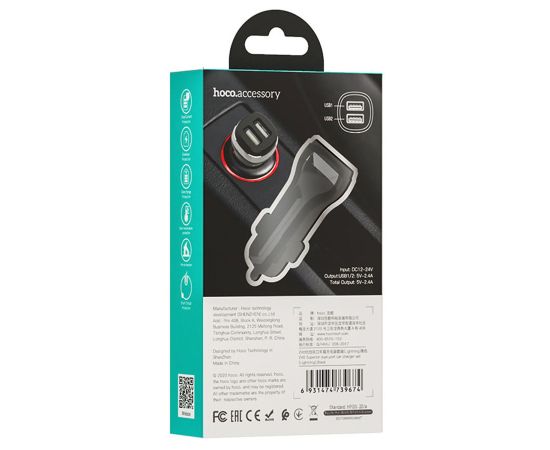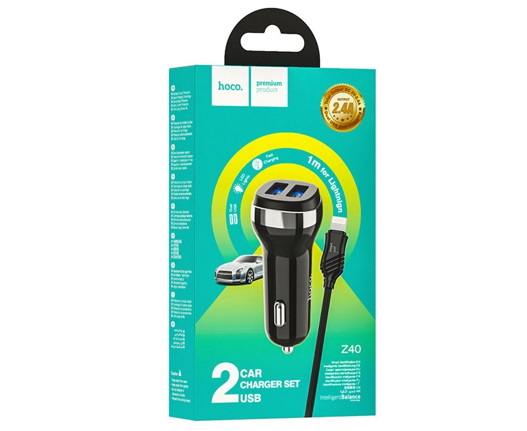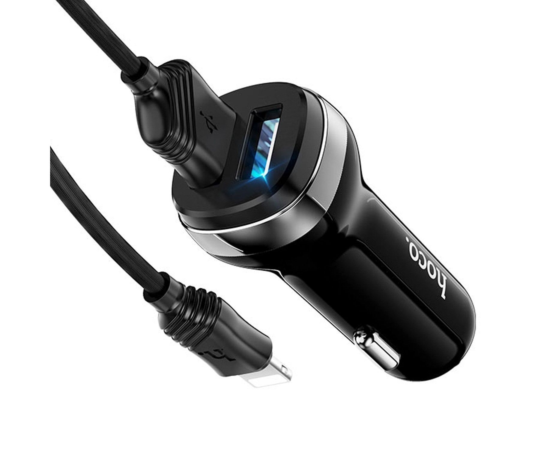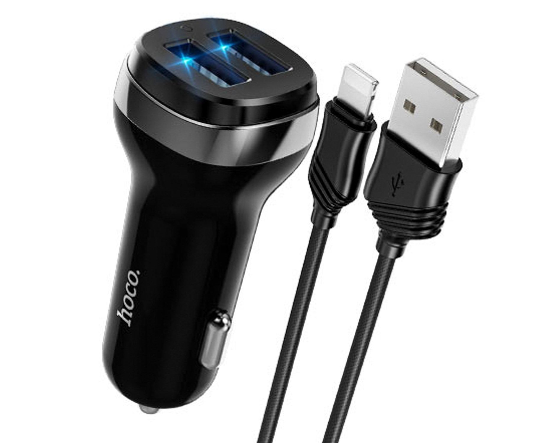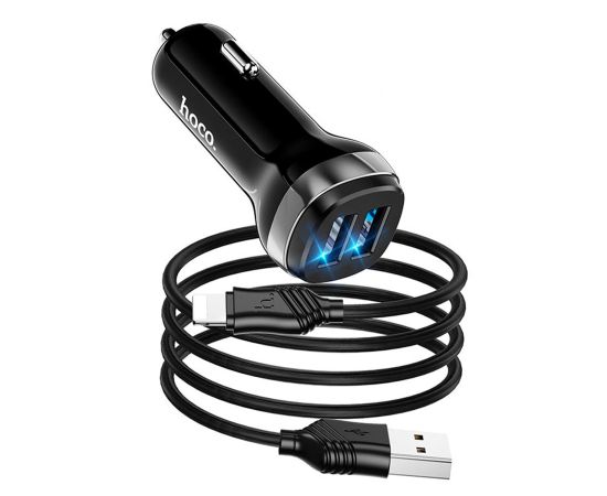 Адаптер Автомобильный с кабелем Hoco Z40 Superior 2USB/5V/2.4A +lightning (black) (202566)