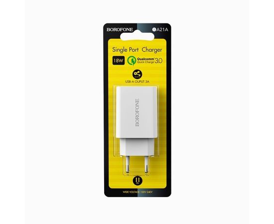 Адаптер Сетевой Borofone BA21A Long QC3.0 USB 3A/18W (white) (124171)
