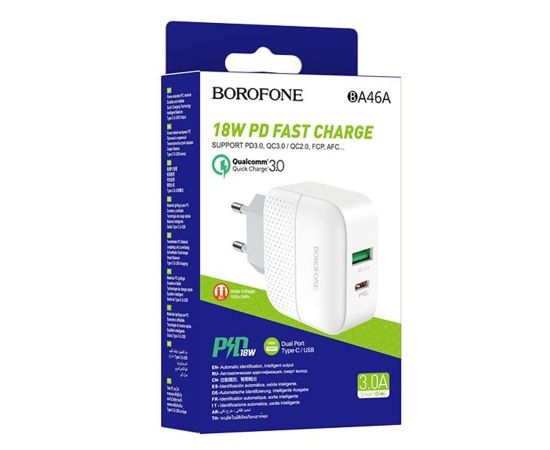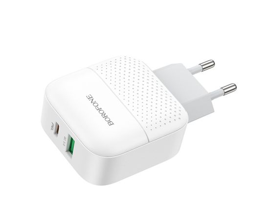 Адаптер Сетевой Borofone BA46A Premium PD QC3.0 USB/Type-C 3A/18W (white) (124168)