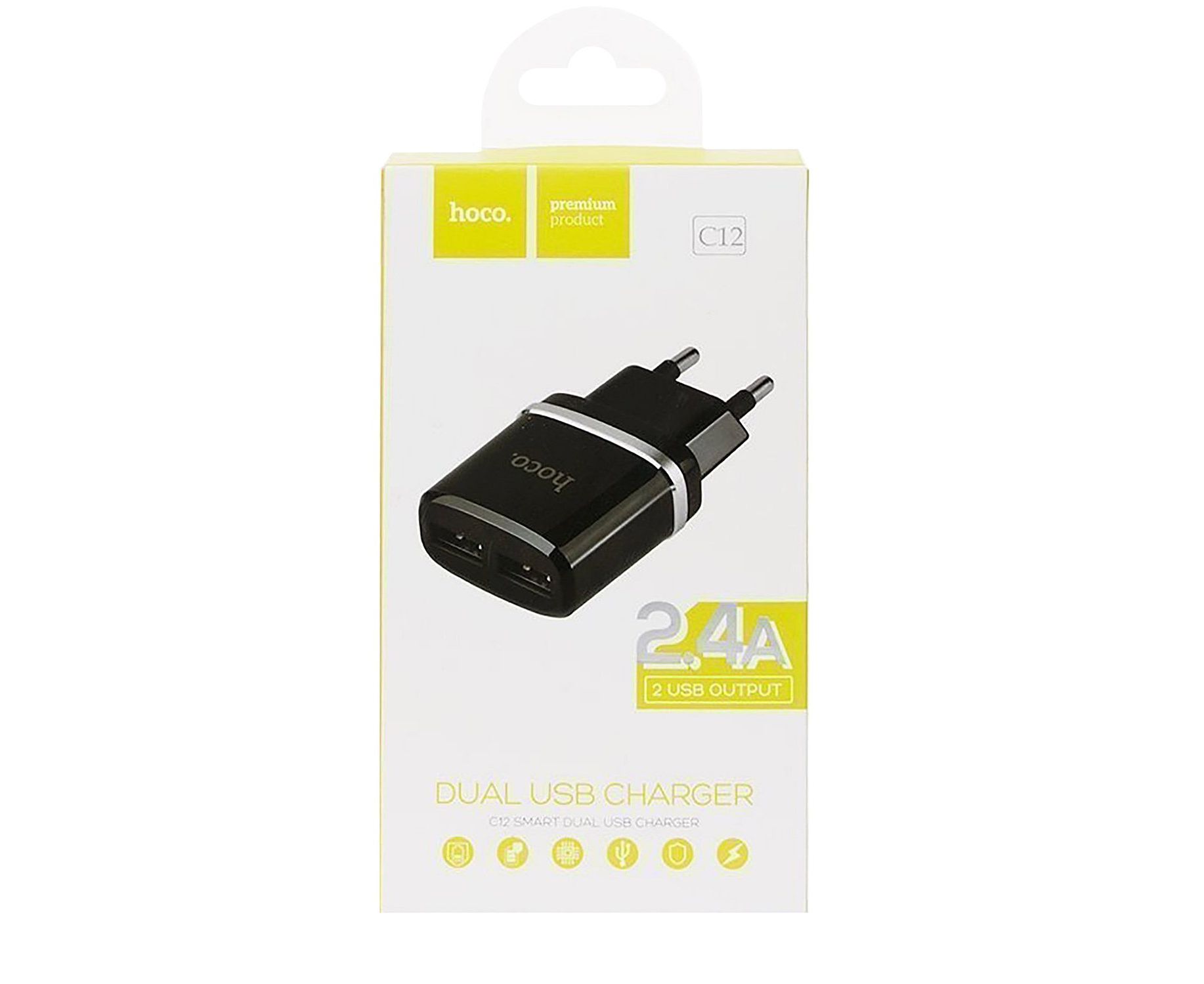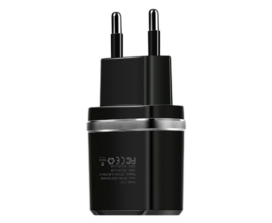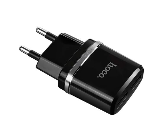 Адаптер Сетевой Hoco C12 2USB 2,4A/10W (black) (85351)