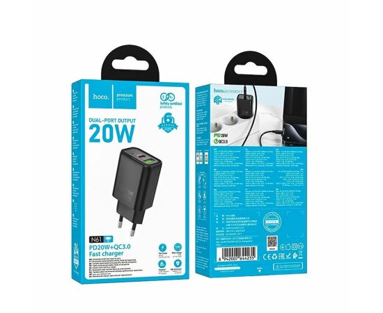 Адаптер Сетевой Hoco N61 Gentle PD20W+QC3.0 USB/Type-C (black) (238648)