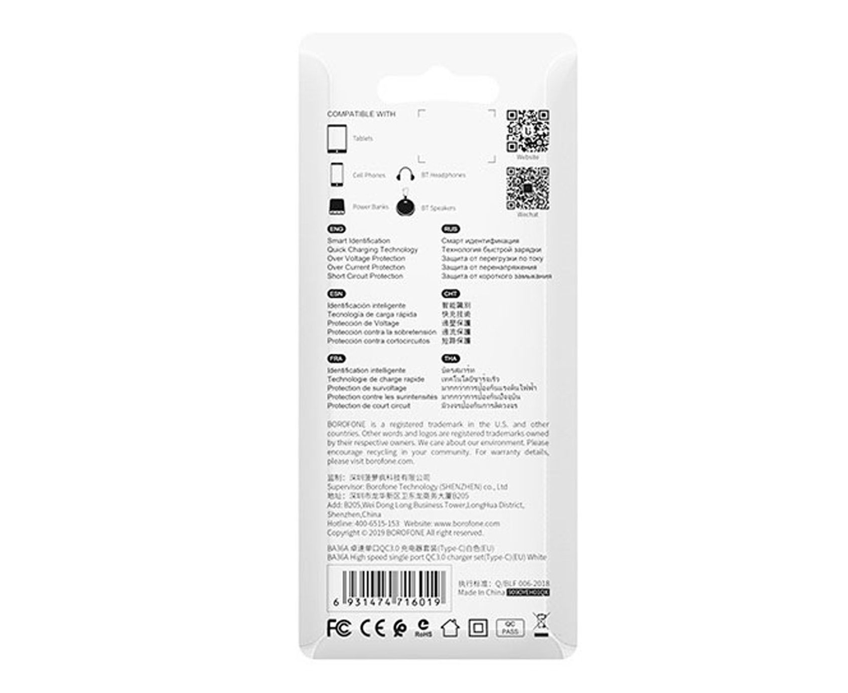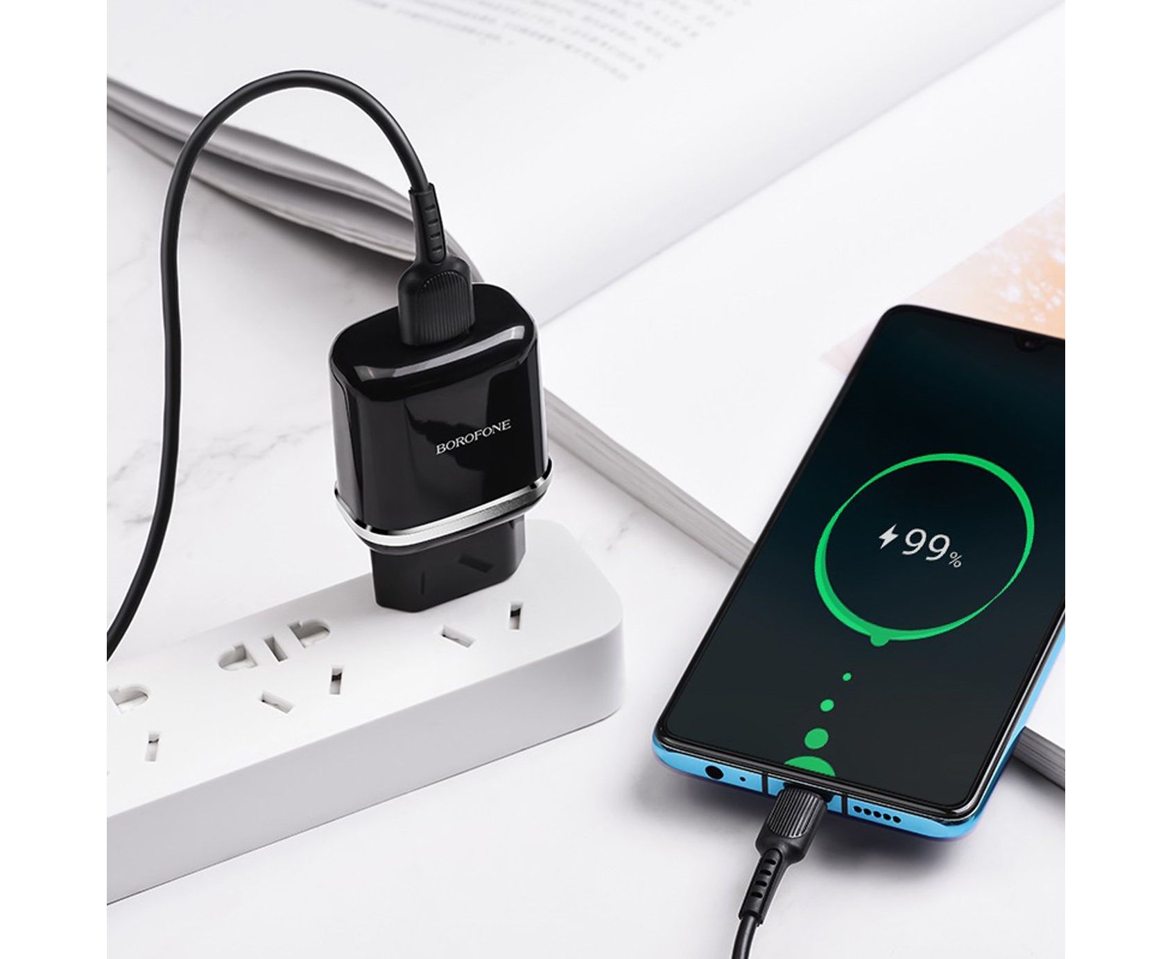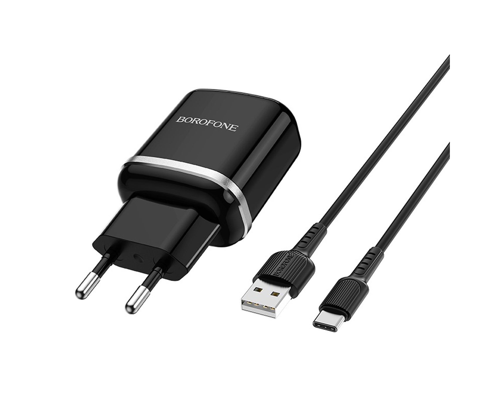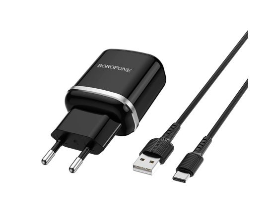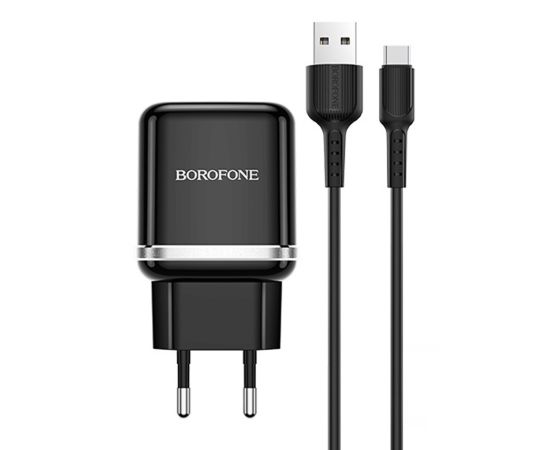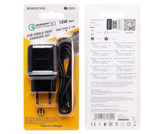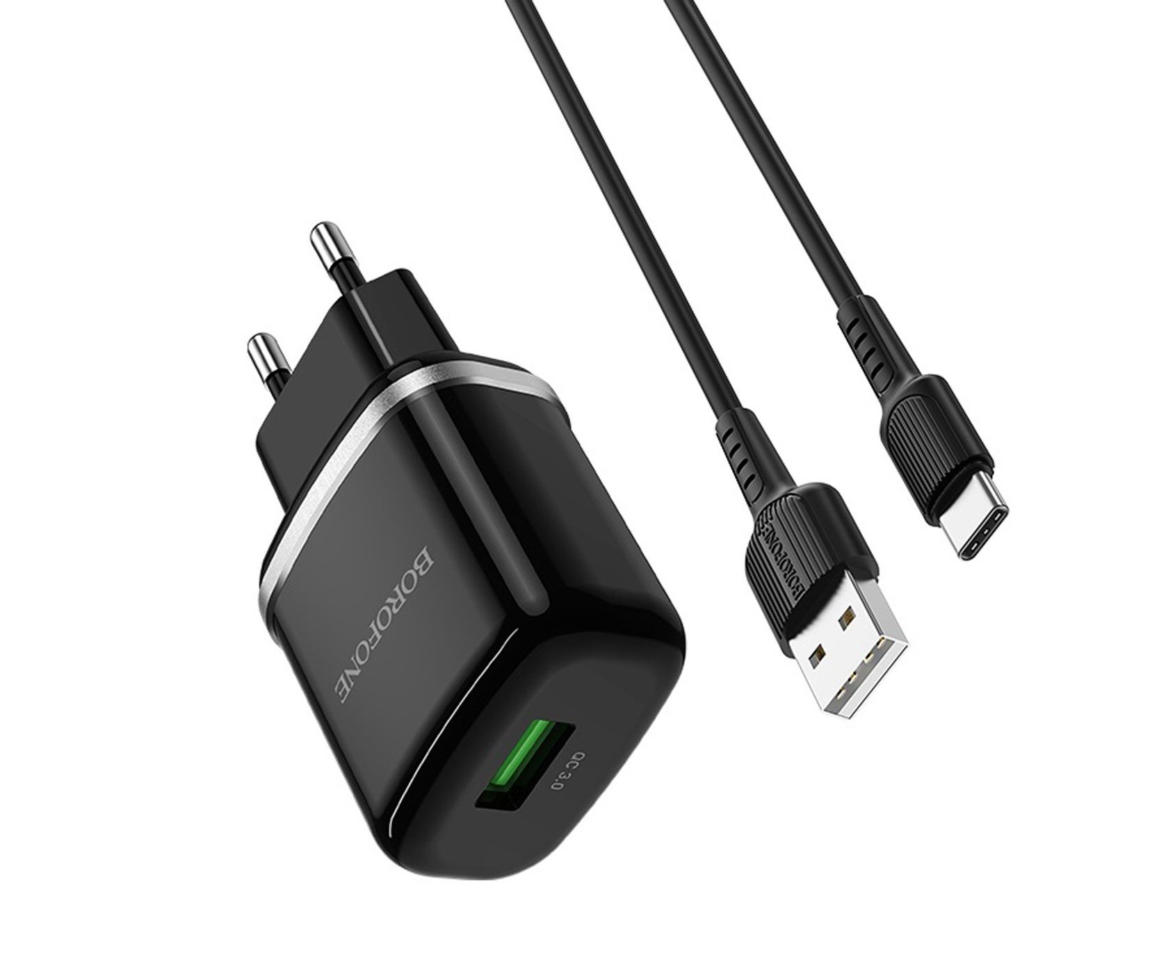 Адаптер Сетевой с кабелем Borofone BA36A High 1USB/5V/3A QC3.0 +Type-C (black) (133680)