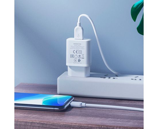Адаптер Сетевой с кабелем Borofone BA52A Gamble 1USB/5V/2.1A +lightning (white)