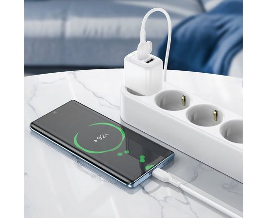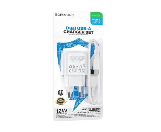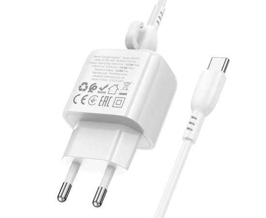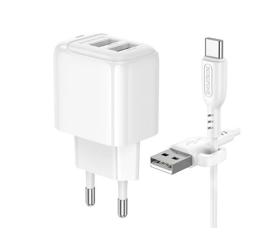 Адаптер Сетевой с кабелем Borofone BAS41A Potential 2USB 2A/10W (USB/Type-C) (white) (235127)