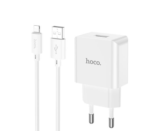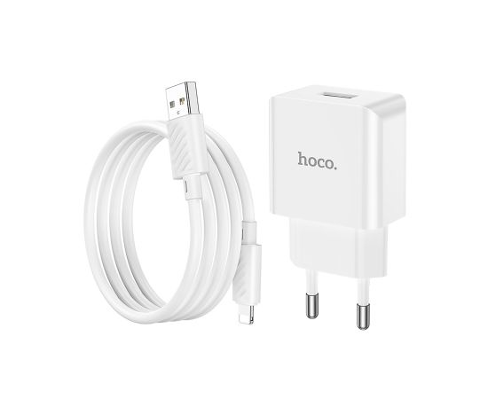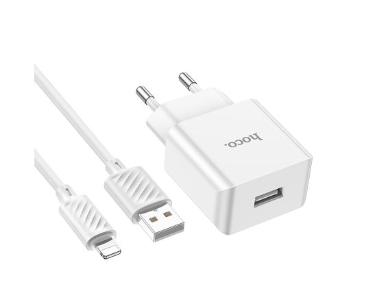 Адаптер Сетевой с кабелем Hoco C106A Leisure USB 2,1A/10W (USB/Lightning) (white) (221584)