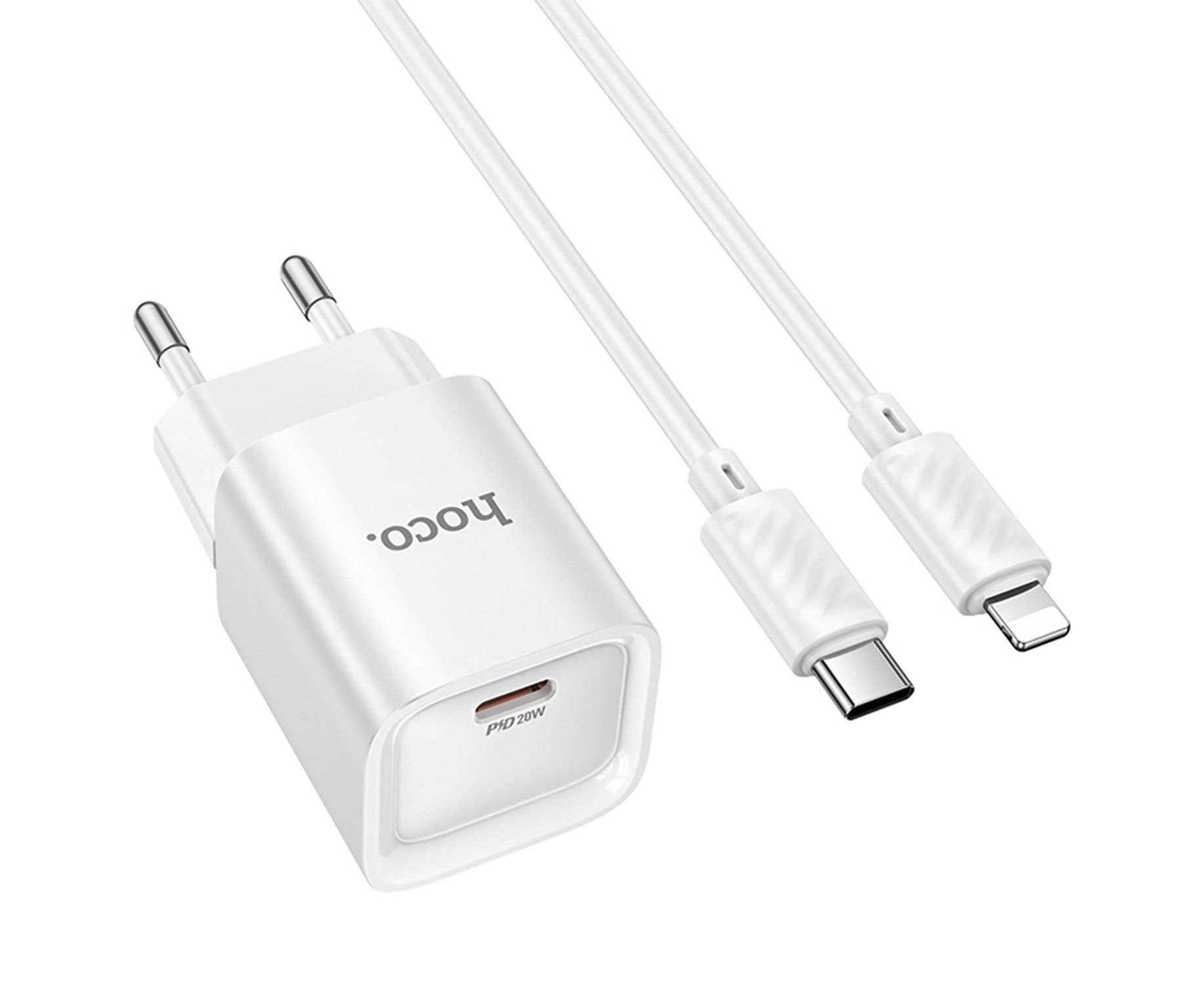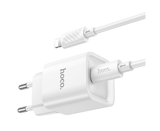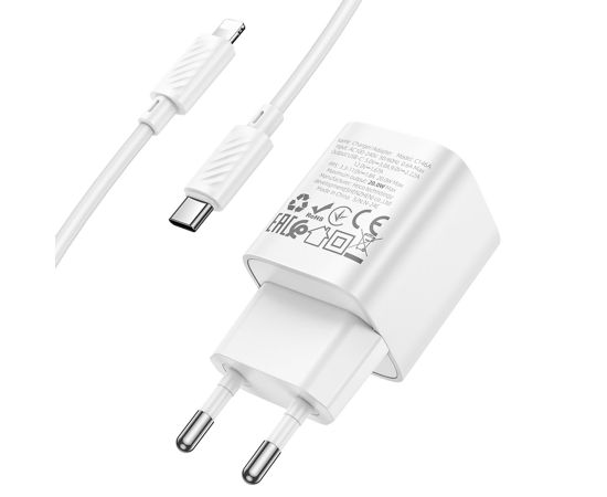 Адаптер Сетевой с кабелем Hoco C146A Charm PD Type-C 20W (Type-C/Lightning) (white) (238659)
