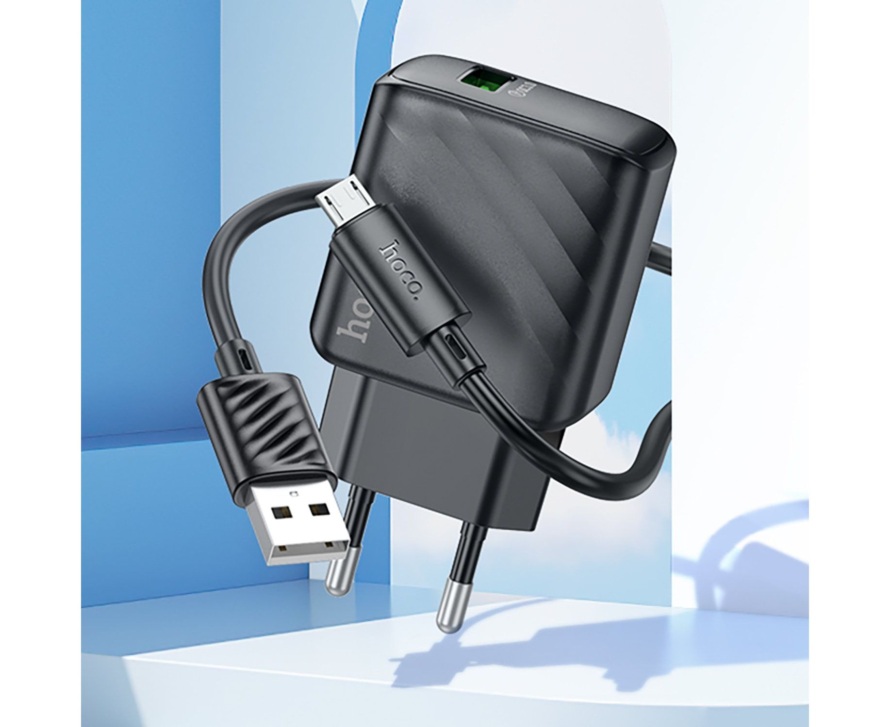 Адаптер Сетевой с кабелем Hoco CS21A Rich QC3.0 USB 18W (USB/Micro USB) (black) (222790)