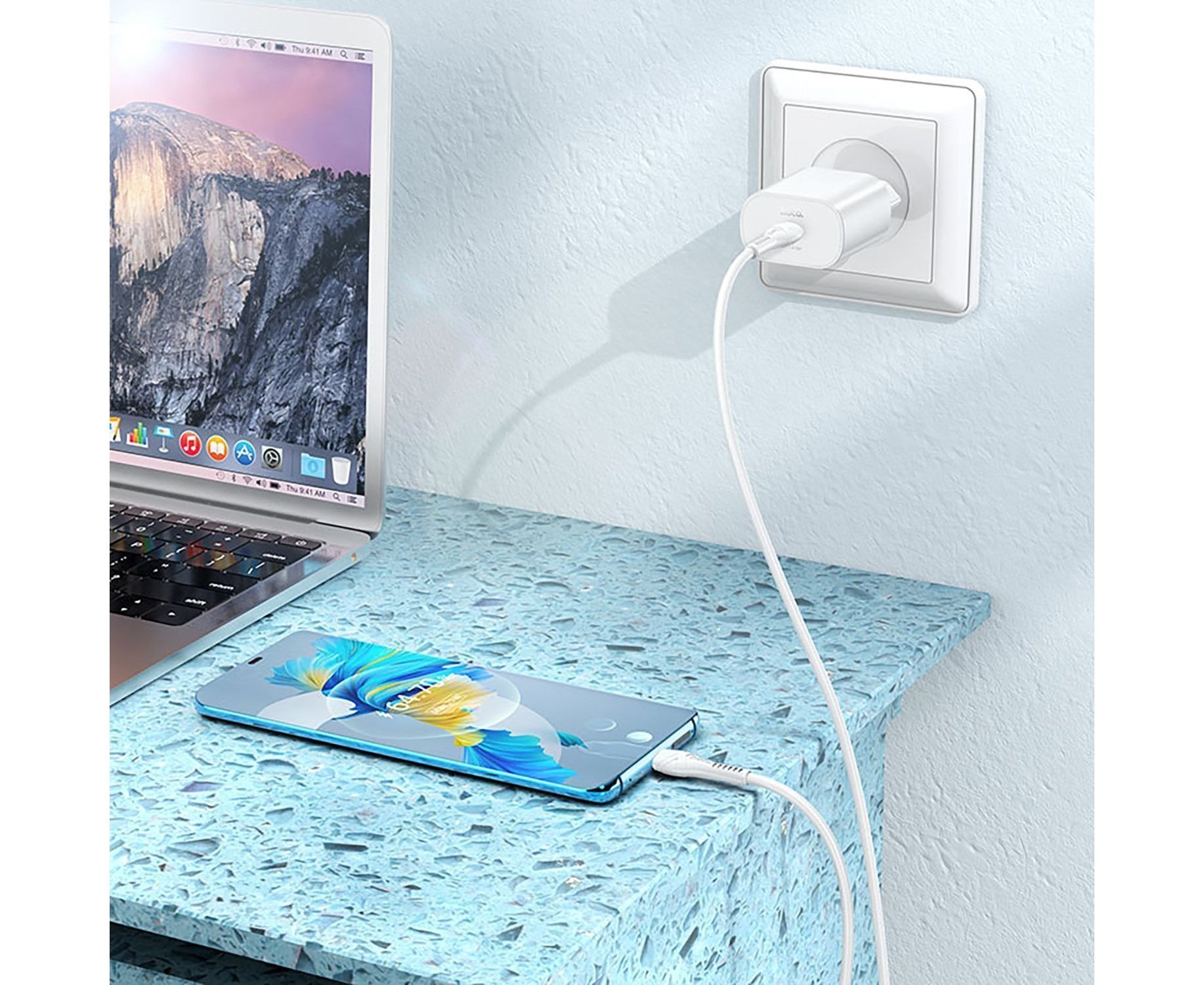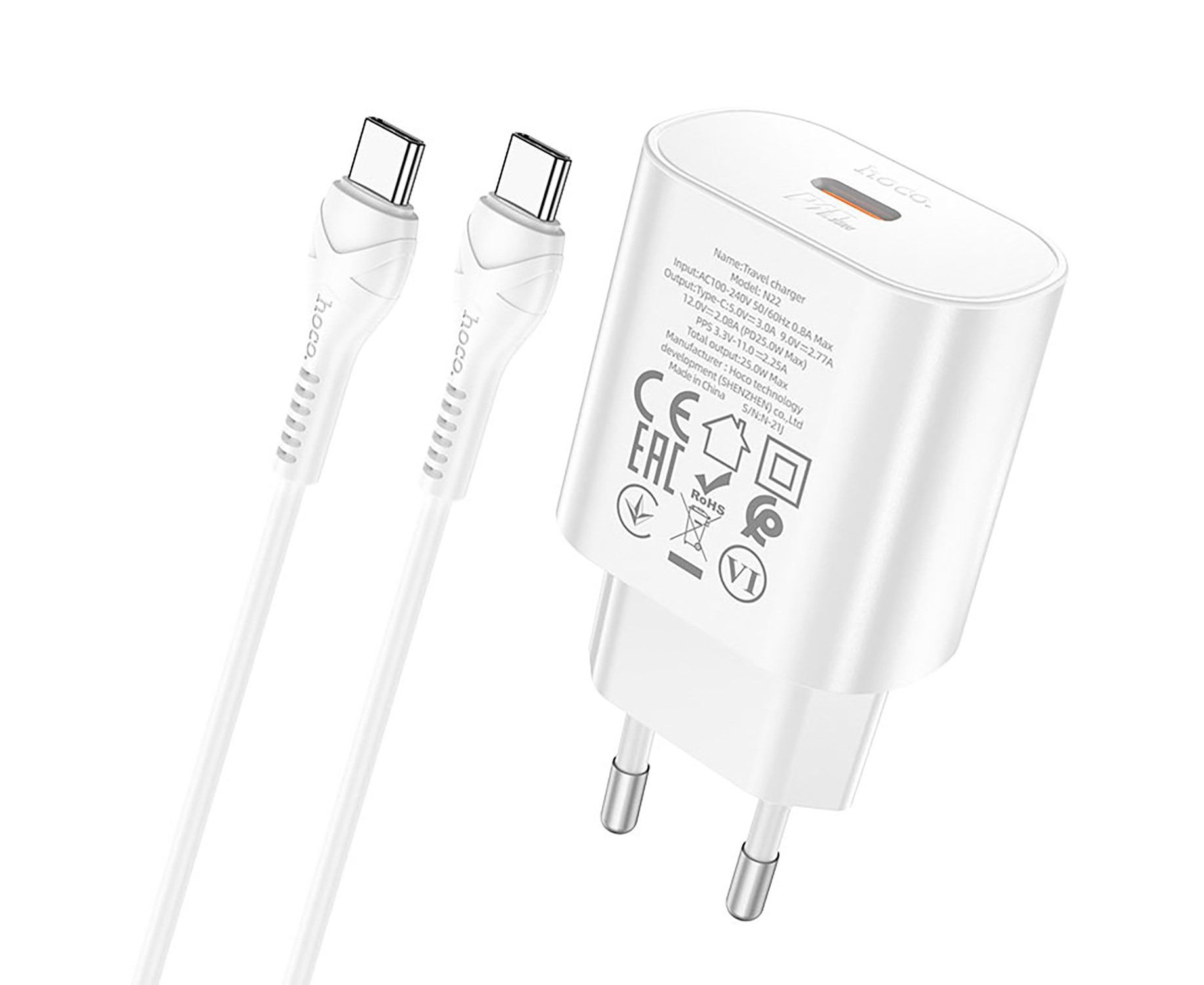 Адаптер Сетевой с кабелем Hoco N22 Jetta PD25W Type-C - iP (white) (213949)