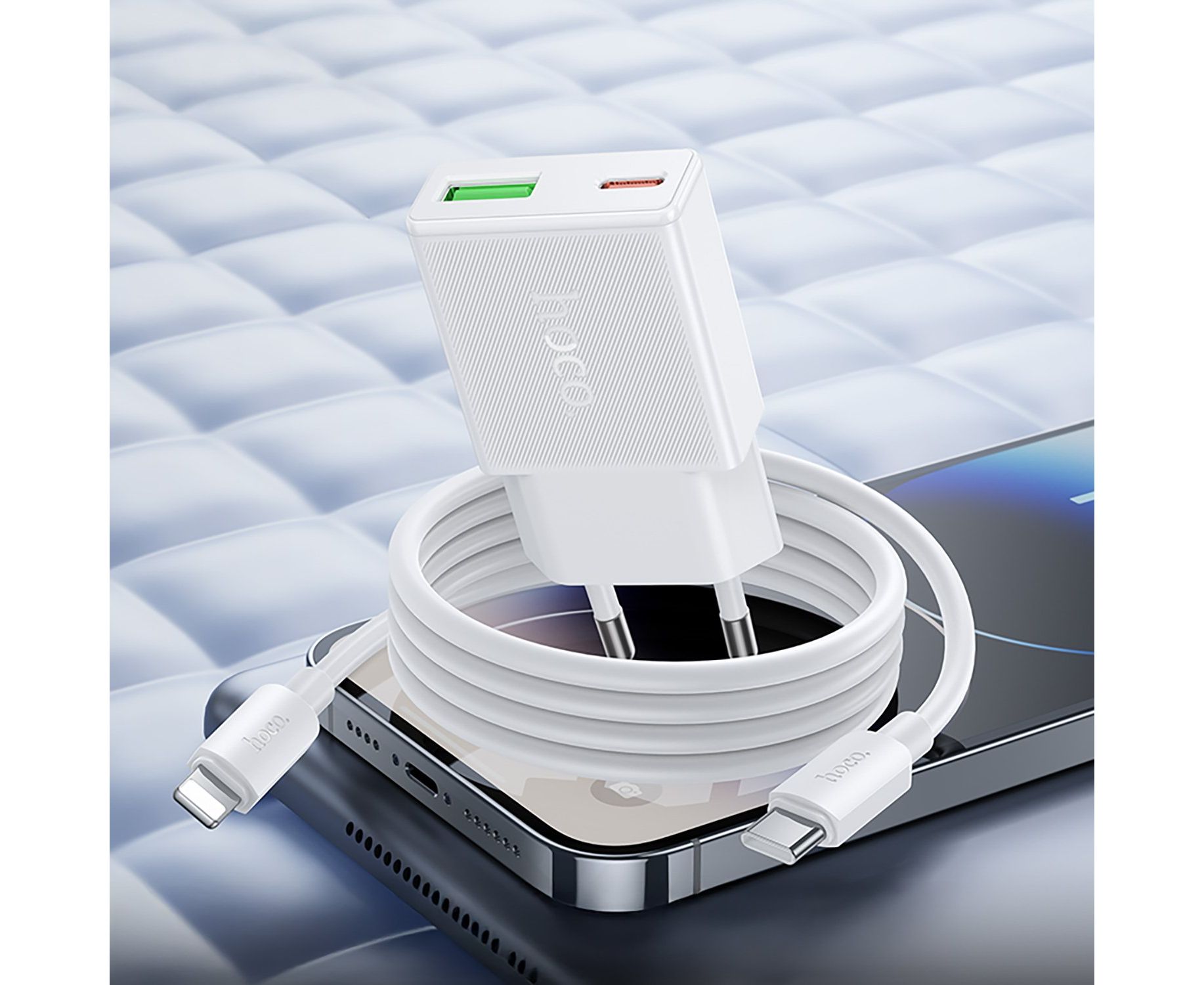 Адаптер Сетевой с кабелем Hoco N73 Mini PD+QC3.0 USB/Type-C 20W (Type-C/Lightning) (white) (242973)