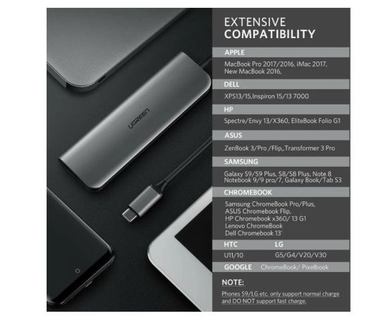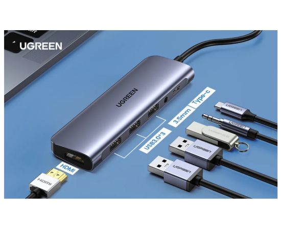 Адаптер UGreen CM136 (80132) USB C to 3×USB 3.0+HDMI+3.5mm (2-in-1)+PD Adapter серый