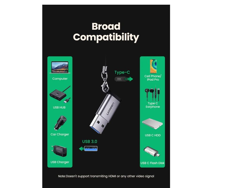 * Адаптер UGREEN USB A от мужчины к женщине USB C позволяет добавить порт USB Type C к старому ноутбуку или ПК поверх обычного порта USB A, обеспечивая высокую скорость передачи данных и подключения благодаря реверсивной конструкции USB-C. С помощью этого адаптера USB-C вы можете подключать больше смартфонов или планшетов Type C к компьютерам USB A для создания большего количества подключений.