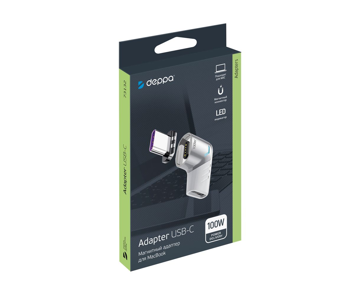 Адаптер USB-С - USB-C, магнитный, белый, DEPPA, 73132