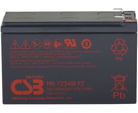 Аккумулятор 12В 9.5Ач CSB HR Series HR1234W, 6 cell, 34W/cell, H95(101)xL151хW65 mm, 2.6 kg