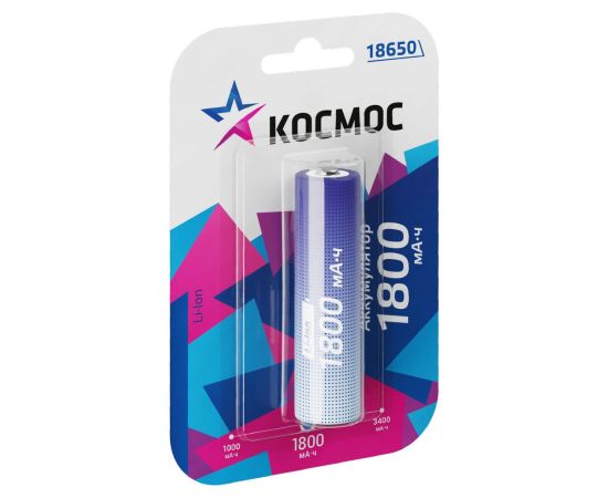 Аккумулятор Космос 18650 Li-ion 1800mAh KOC18650Li-ion18UBL1