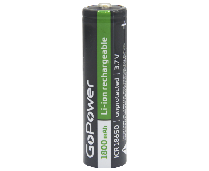 Аккумулятор Li-ion GoPower 18650 PC1 3.6V 1800mAh без защиты выс.конт. (1/80/160)