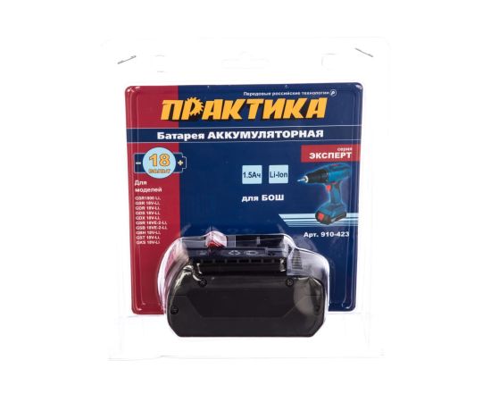Аккумулятор ПРАКТИКА 910-423 для BOSCH 18В, 1.5Ач, Li-ION, в блистере