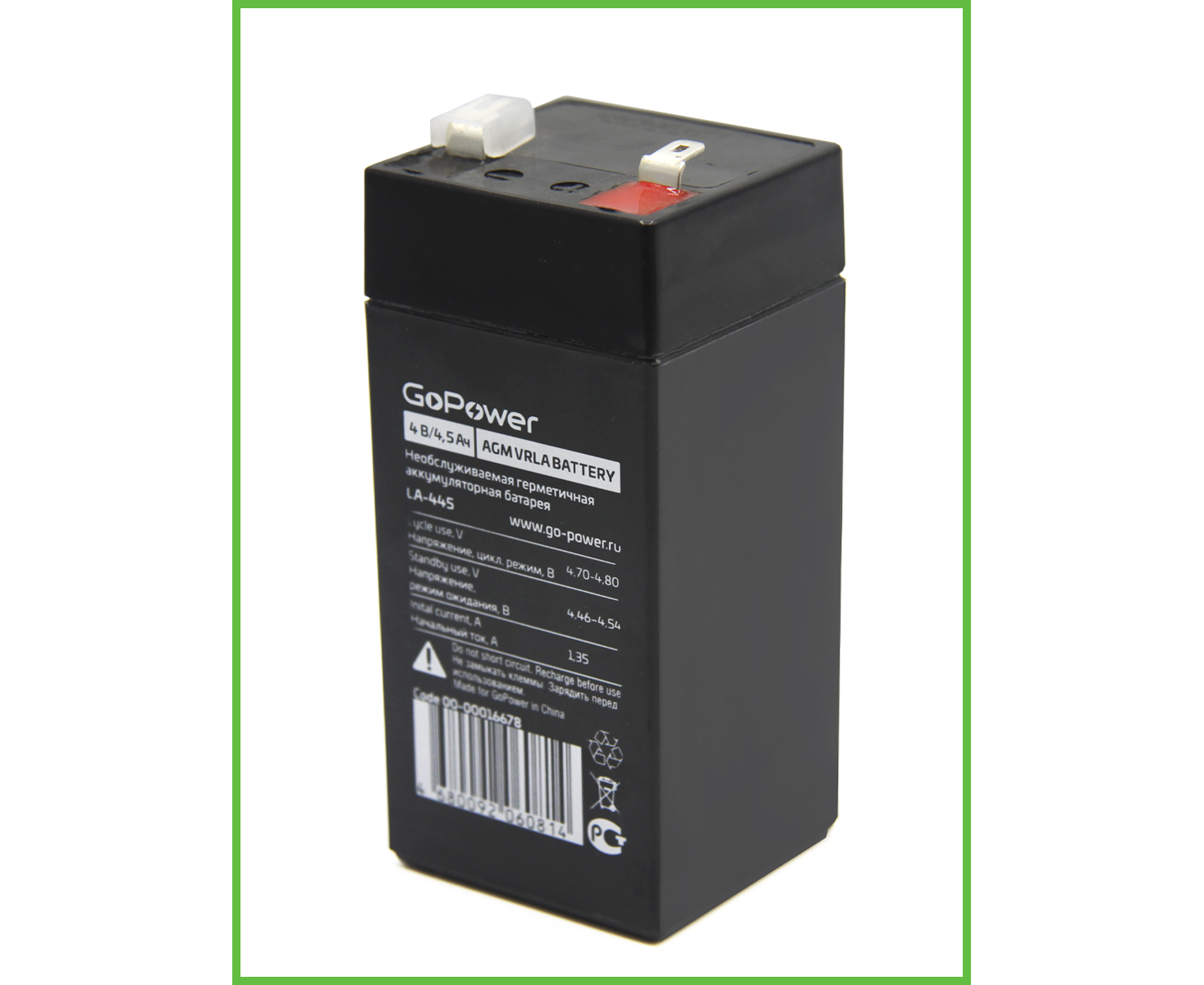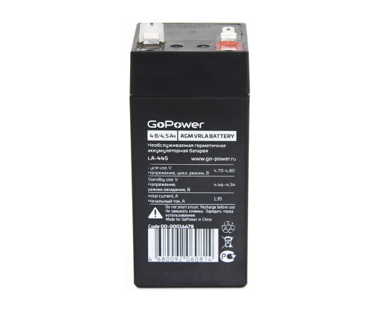 Аккумулятор свинцово-кислотный GoPower LA-445 4V 4.5Ah (1/20)