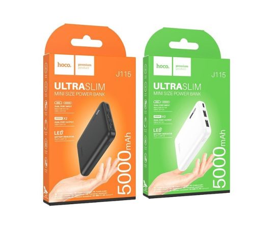 Аккумулятор внешний HOCO J115 Journey, 5000mAh, пластик, алюминий, 2 USB выхода, 2.0А, цвет: чёрный (1/94)