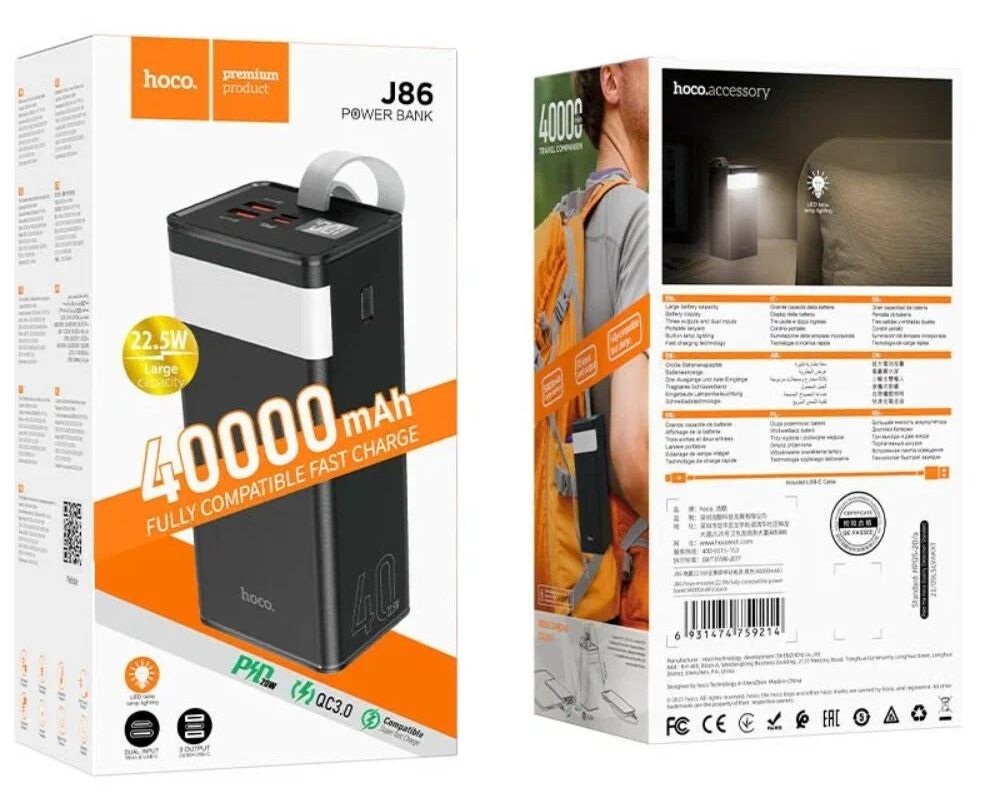 Аккумулятор внешний резервный HOCO J86 Powermaster 22.5W fully compatible 40000mAh (черный)
