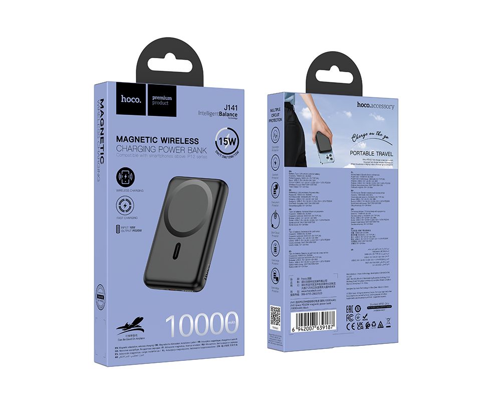 Аккумулятор внешний резервный HOCO J141 Grace PD20W magnetic 10000mAh (чёрный)