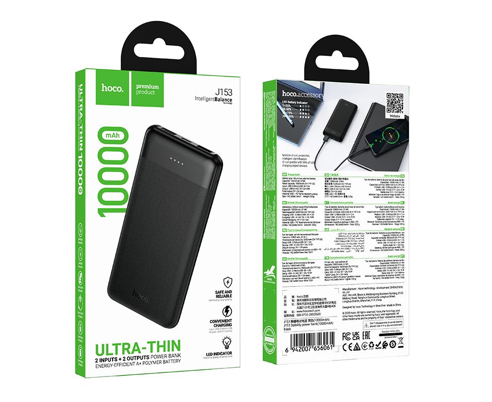 Аккумулятор внешний резервный HOCO J153 Stability 10000mAh (черный)