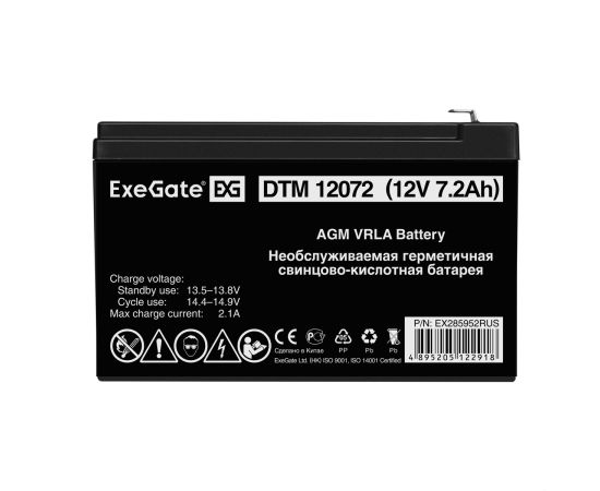 Аккумуляторная батарея ExeGate DTM 12072 (12V 7,2Ah, клеммы F1) 285952
