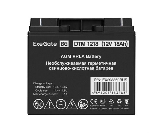 Аккумуляторная батарея ExeGate DTM 1218 (12V 18Ah, клеммы F3 (болт М5 с гайкой) 293360