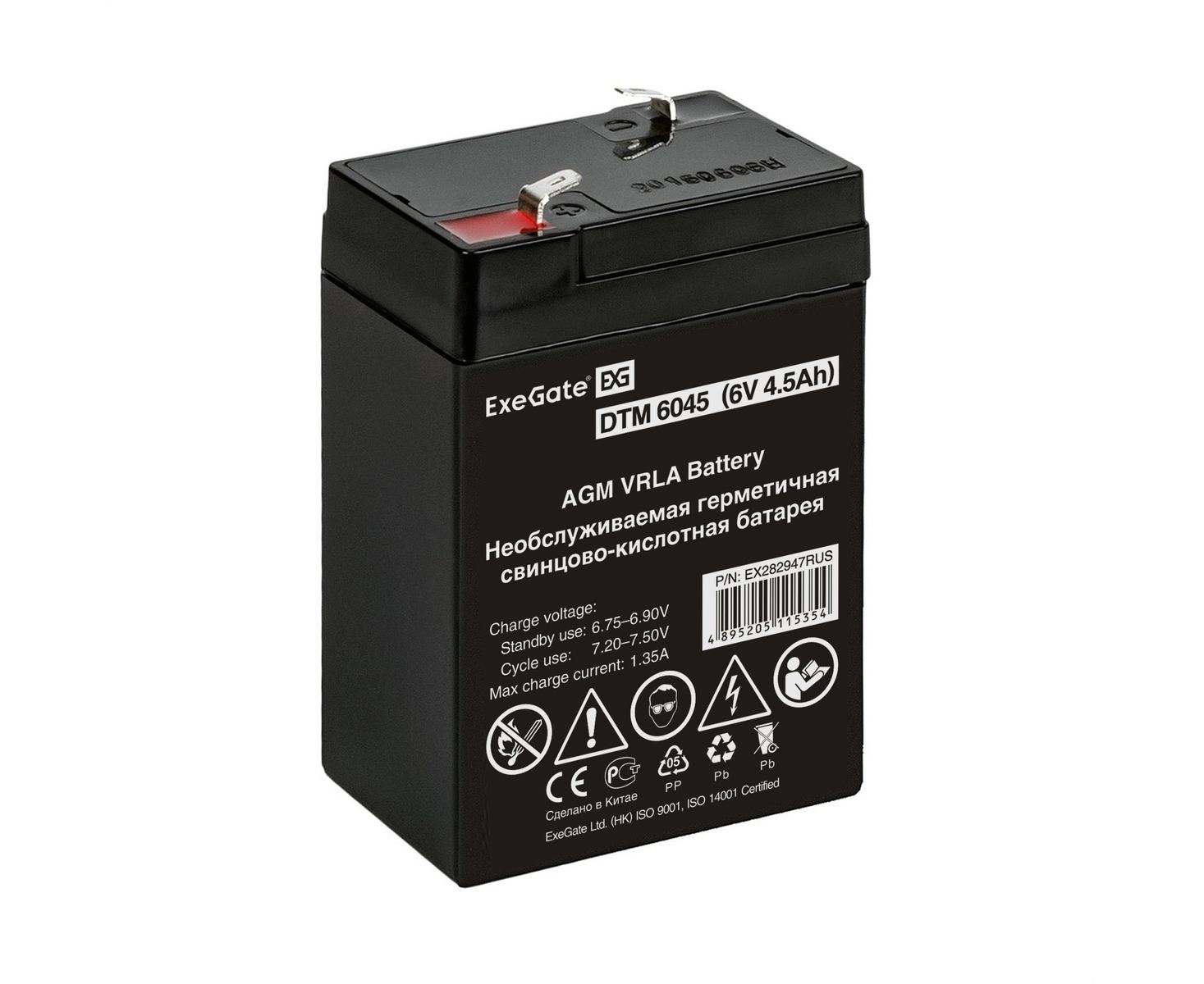 Аккумуляторная батарея ExeGate DTM 6045 (6V 4.5Ah, клеммы F1) 282947