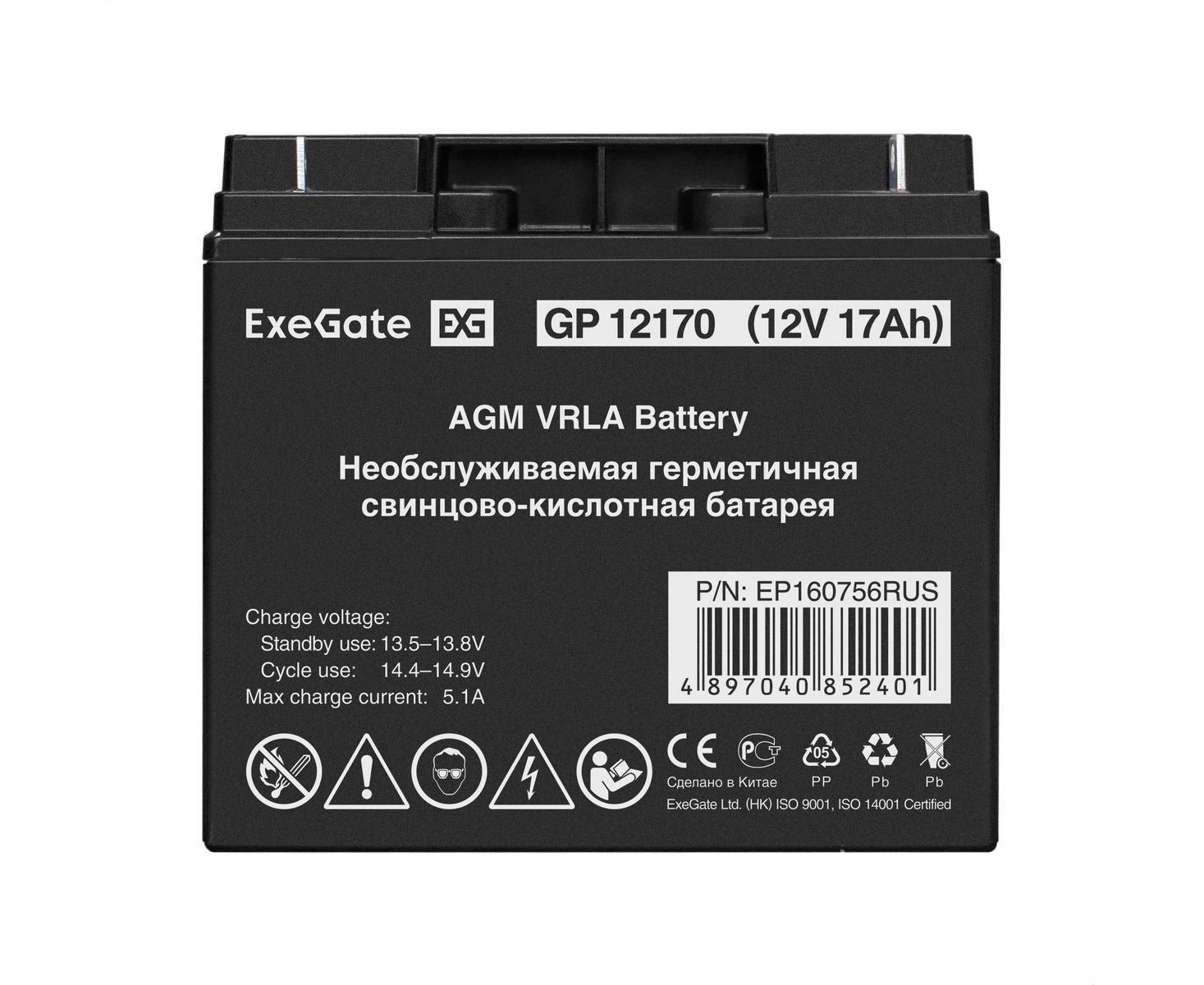 Аккумуляторная батарея ExeGate GP12170 (12V 17Ah, клеммы F3 (болт М5 с гайкой) 160756