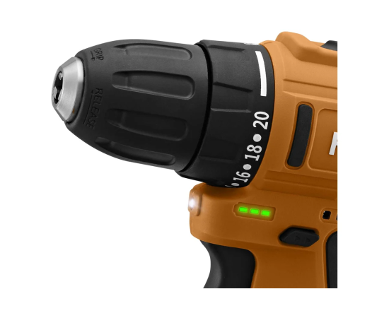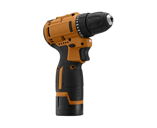 Аккумуляторная дрель-шуруповерт КТ-6504 поможет вам провести ремонтные работы или собрать мебель. С ней вы легко и быстро сможете закрутить или выкрутить шурупы или винты, а также просверлить отверстия в разных поверхностях. Благодаря подсветке в верхней части устройства будет удобно работать даже в плохо освещенных местах. Подсветка загорается вместе с включением дрели-шуруповерта.
