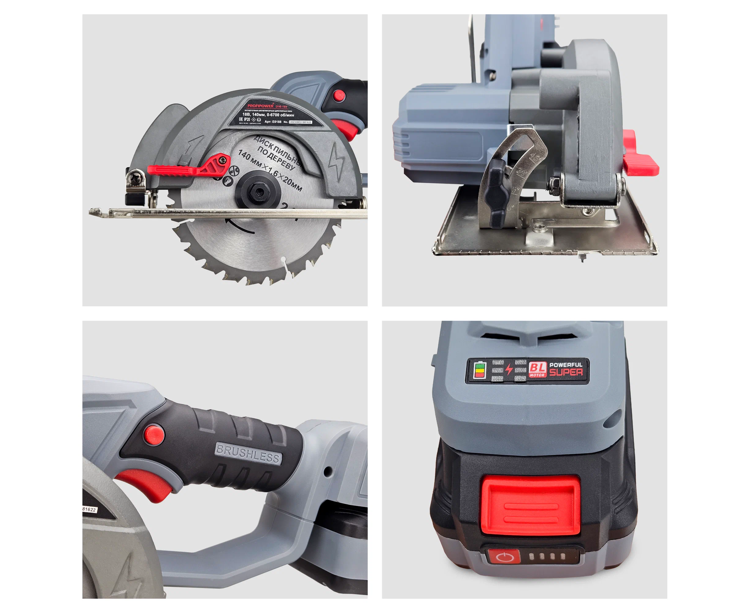 Аккумуляторная пила циркулярная бесщеточная ProfiPower DHS-18V (18В,Li-ion-1шт,4.0Ач,140мм,6700об/мин,З/У,в коробке)