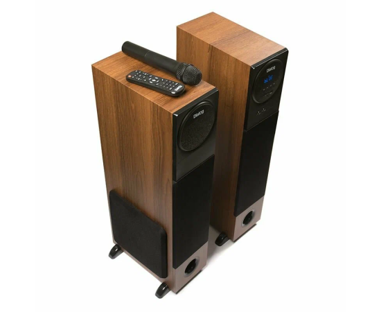 1. Громкоговоритель правый – 1 шт. 2. Громкоговоритель левый – 1 шт. 3. Пульт дистанционного управления (ДУ) – 1 шт. 4. Батарейки ААА (неперезаряжаемые) для пульта ДУ - 2 шт. 5. Беспроводной караоке микрофон - 1 шт. 6. Кабель 2xRCA-M => 3.5 мм «джек» для подключения к источнику сигнала – 1 шт. 7. Кабель питания – 1 шт. 8. Пластиковые ножки - 4 шт. 9. Саморезы для крепления ножек к корпусу АС - 8 шт. 10. Резиновые амортизаторы для ножек с самоклеющейся плёнкой - 8 шт. 11. Руководство пользователя с гарантийным талоном – 1 шт. 12. Упаковка – 1 комплект