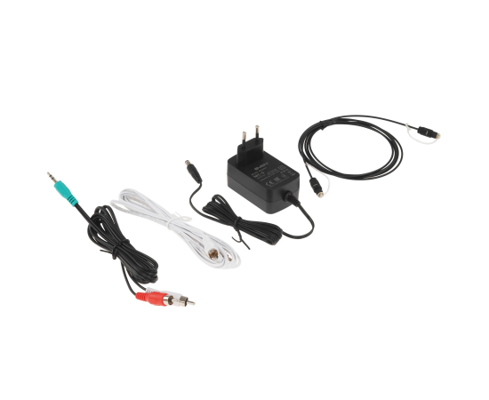 блок питания, документация, кабель 2RCA-2RCA, кабель 2RCA-3.5 jack, оптический кабель, пульт ДУ