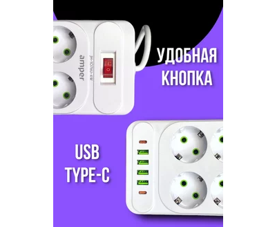Сетевой удлинитель с кнопкой выключения от бренда Amper представляет собой идеальное решение для обеспечения достаточного количества подключений в любой комнате. Этот модельный ряд удлинителей включает в себя 6 розеток 220В, что позволяет подключить множество устройств одновременно. Дополнительно, удлинитель оснащен 4 USB портами и 2 портами Type-C, обеспечивая удобство зарядки современных гаджетов. Длина кабеля составляет 2 метра, что делает его идеальным для использования в домах, офисах и других помещениях. Выбор сетевого удлинителя Amper с 6 розетками, 4 USB и 2 Type-C портами гарантирует комфортное использование электроники в любых условиях.