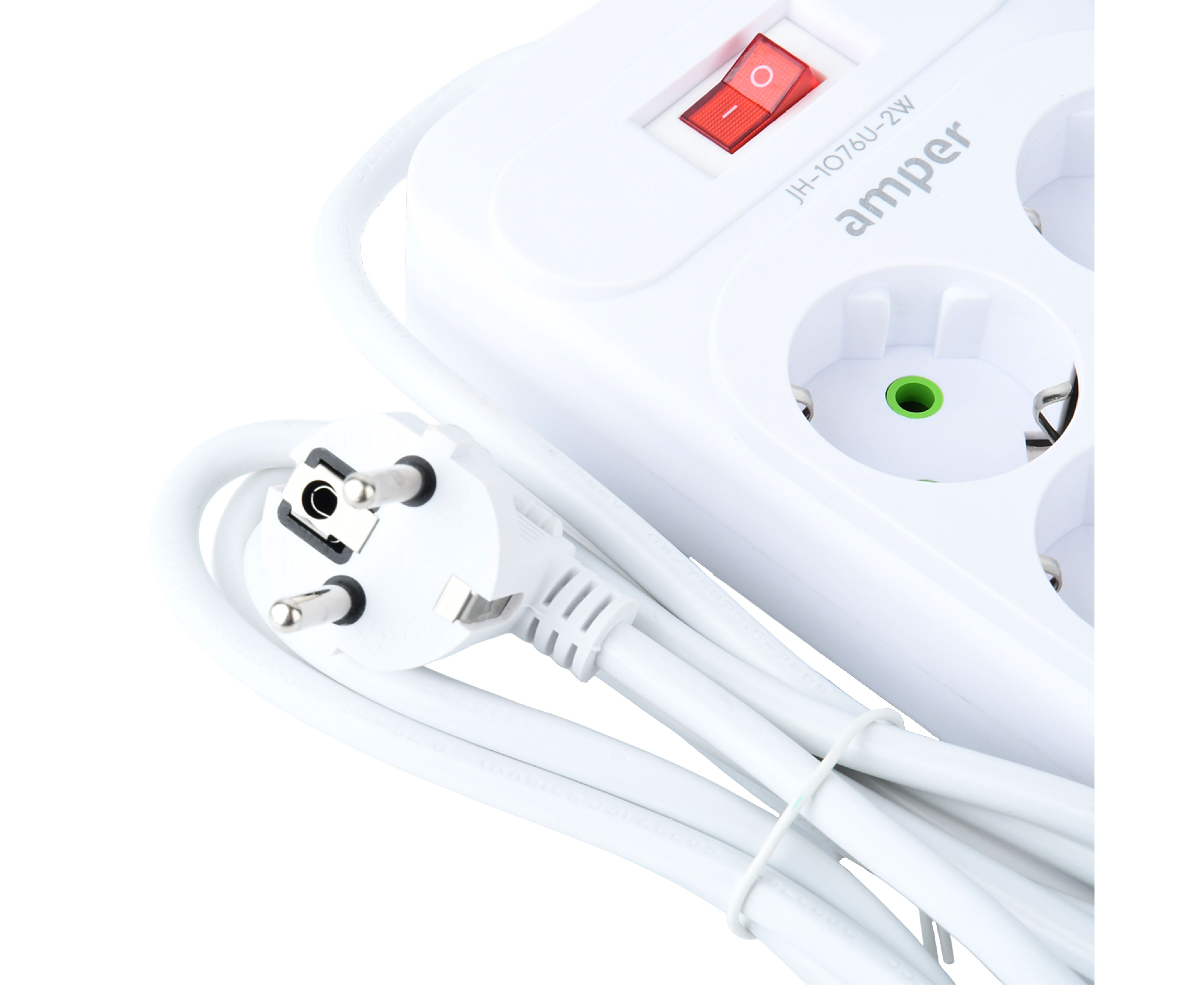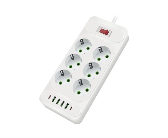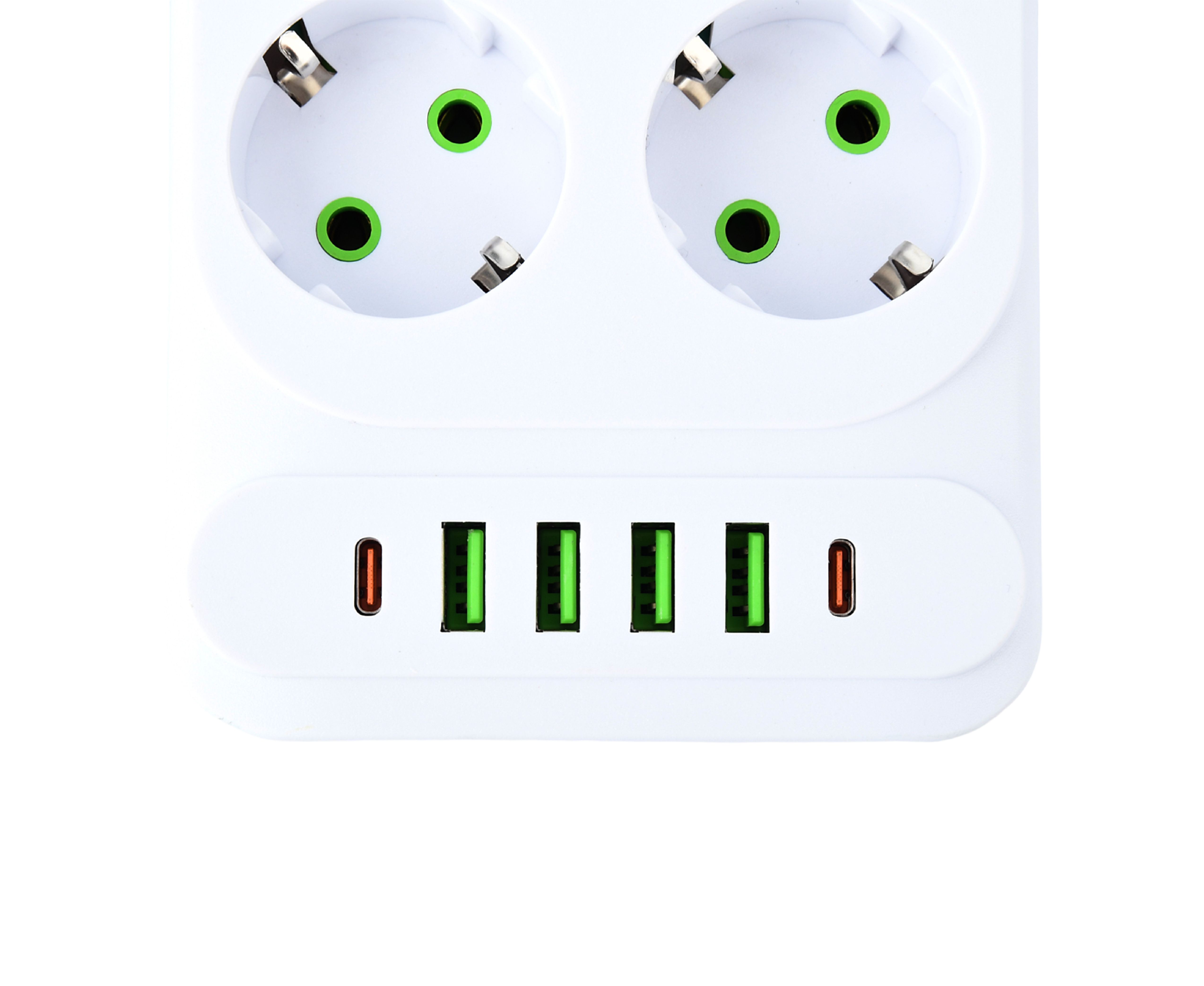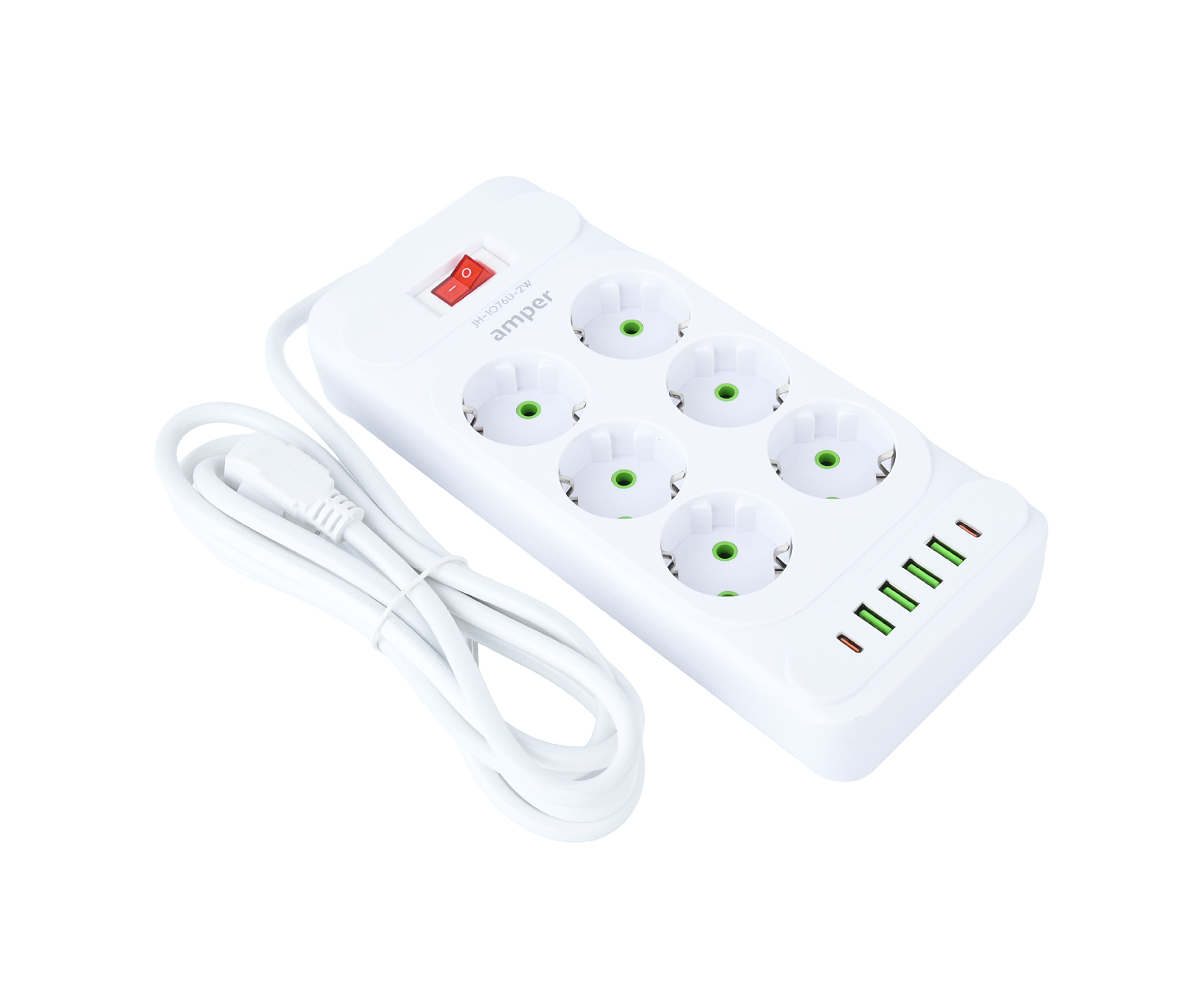 Сетевой удлинитель Amper 2,0м, 6 розеток, 10А, 2500 Вт, 4usb,2Type-C, белый