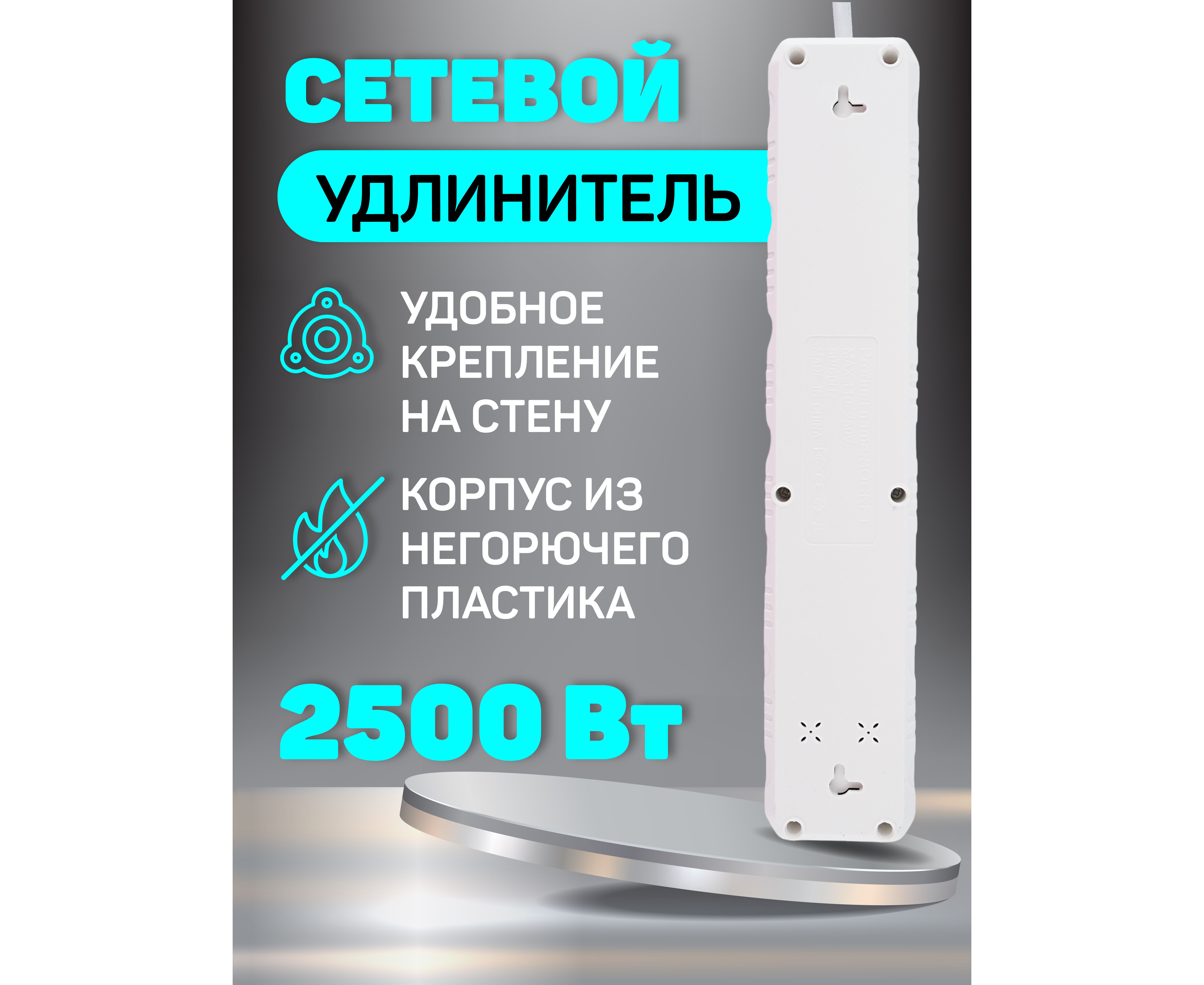 Предлагаем Вам приобрести незаменимый и полезный предмет в любом доме – удлинитель. Он обеспечивает удобство использования электроприборами. Благодаря 5 розеткам Вы можете подключить три электроприбора в сетевой фильтр и использовать их одновременно. Максимальная суммарная мощность подключаемых устройств не должна превышать 2,5кВт. Это достаточно для подключения различных устройств, таких как компьютеры, мониторы, зарядные устройства и другие электроприборы. Встроенные USB-порты позволяют заряжать и подключать мобильные устройства, планшеты, наушники и другие гаджеты без необходимости использовать дополнительные блоки питания (зарядные устройства) Стильный, современный дизайн фильтра обеспечивает удобство использования и экономию пространства. У удлинителя есть отверстия для крепления на стену как в вертикальном, так и в горизонтальном положении. Длина провода 4 метра. Мощность 2500Вт. Корпус выполнен из огнестойкого поликарбоната. Индикатор питания встроен в кнопку включения питания. Максимальный допустимый ток 10 А.