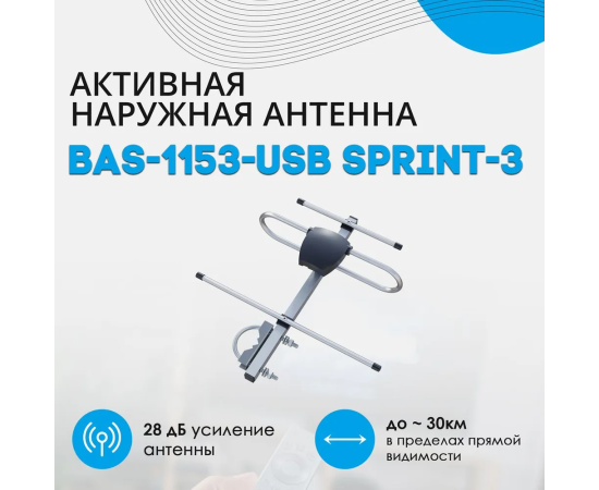 Антенна ТВ РЭМО "SPRINT-3", активная, наружная, питание от антенного разъема, (BAS-1153-5V), (Арт. PF_301031)