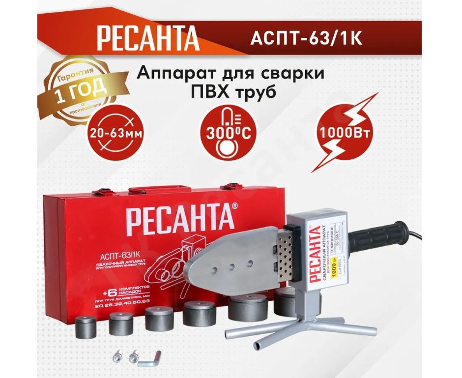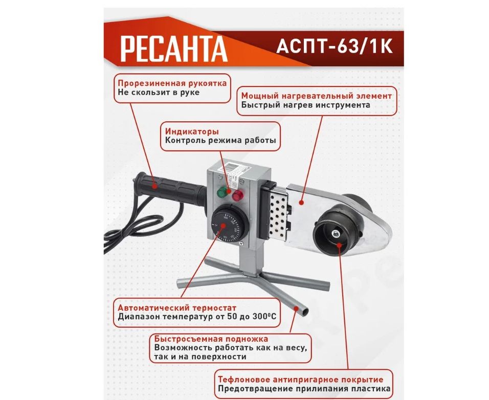 Аппарат для сварки ПВХ труб Ресанта АСПТ-63/1К