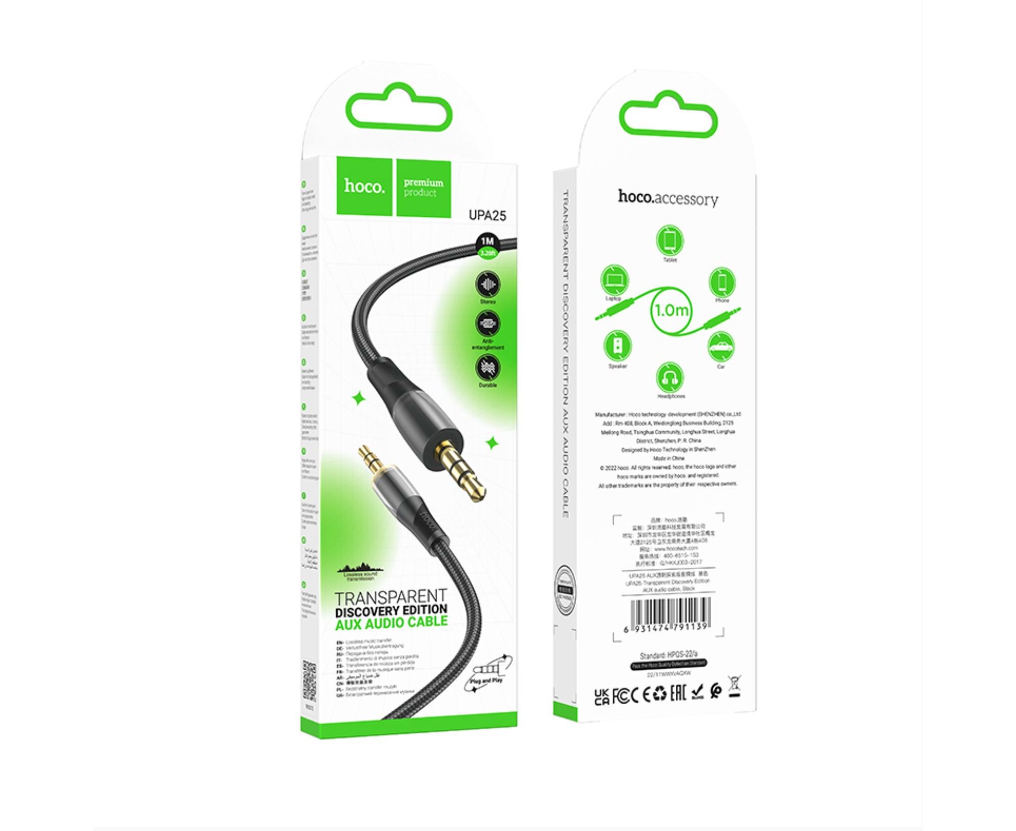 Аудио-кабель HOCO UPA25 Transparent Discovery Edition 3.5мм 1м (чёрный)