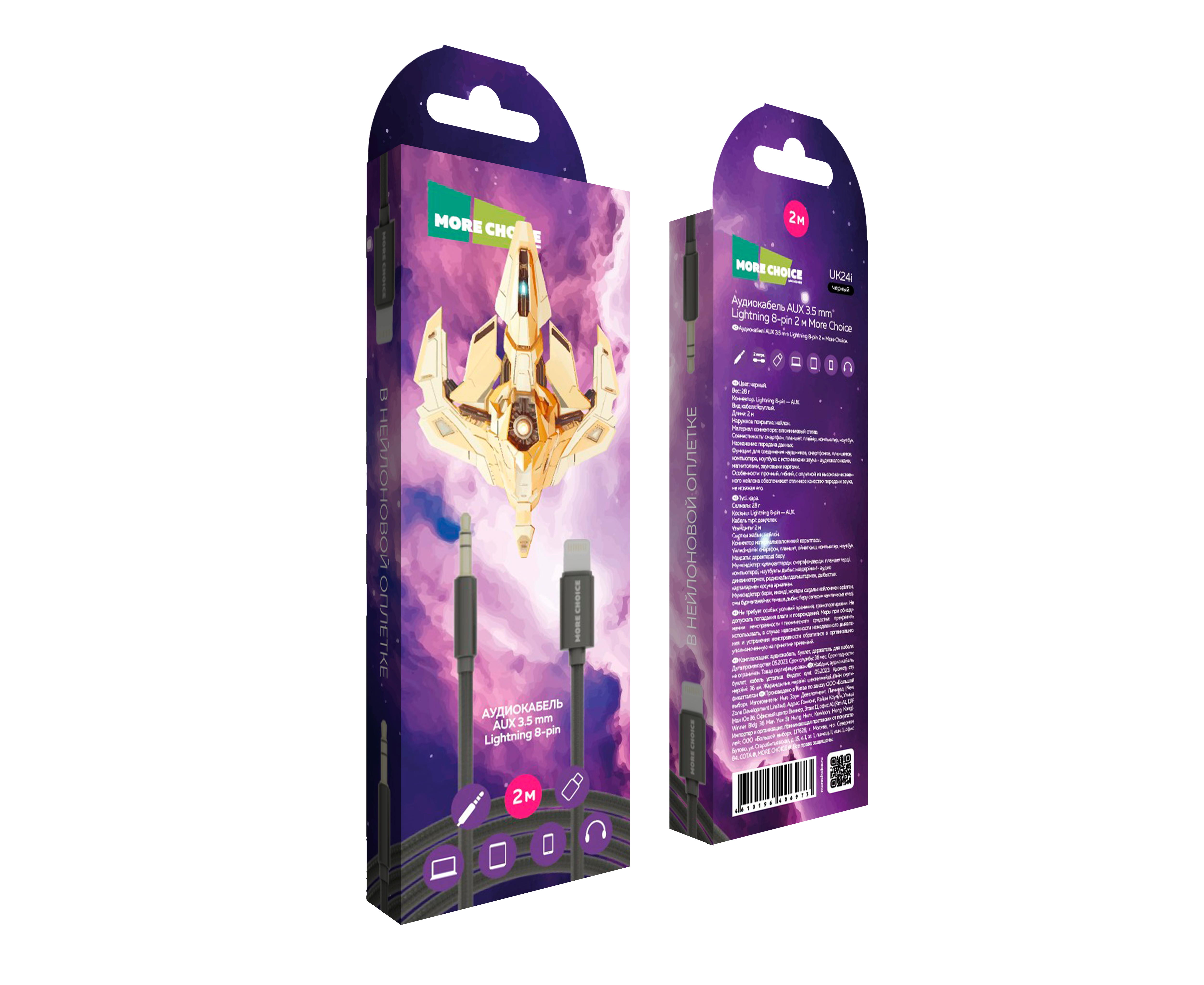 Аудиокабель AUX 3.5mm Lightning 8-pin 2м More choice UK24i нейлон