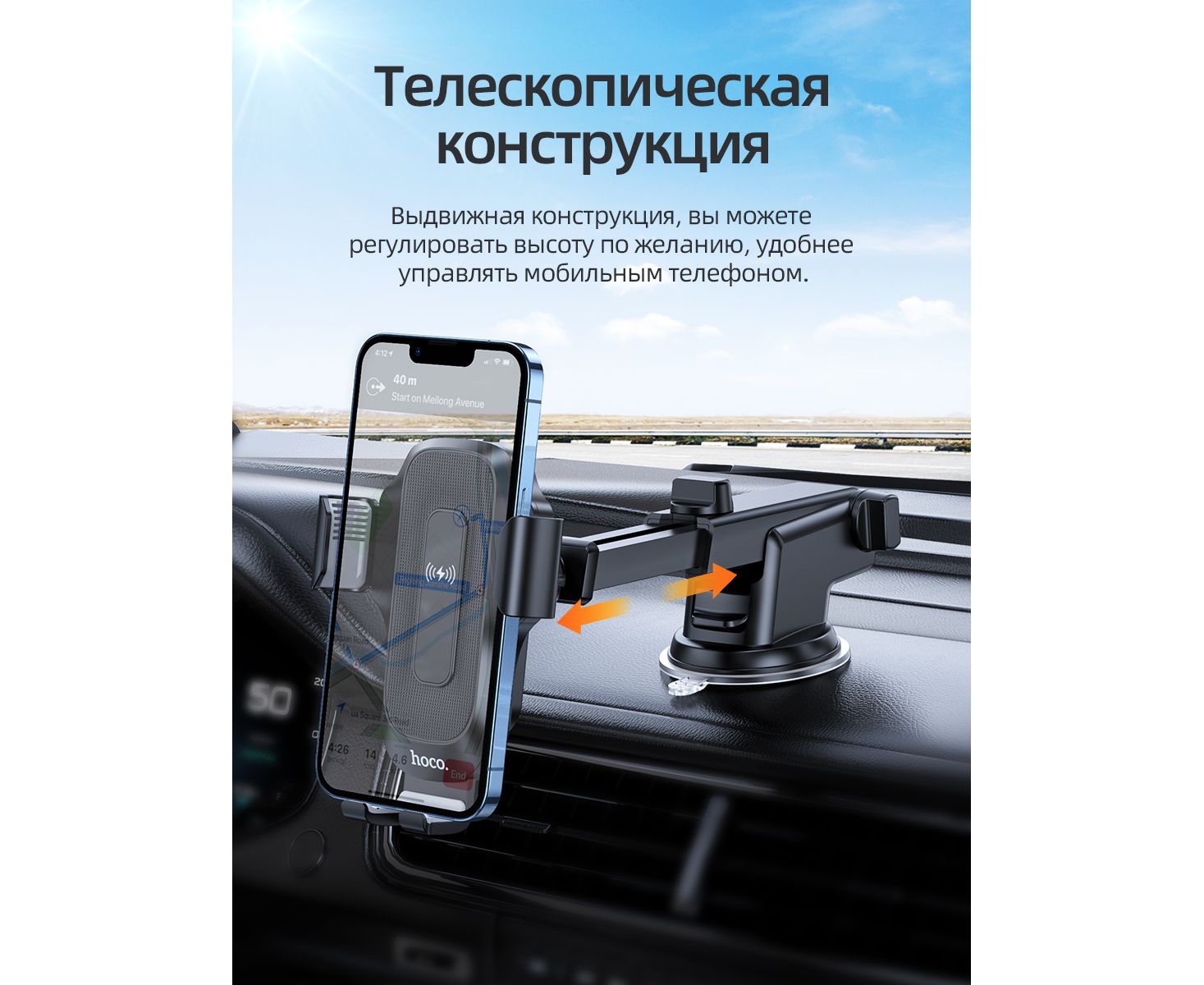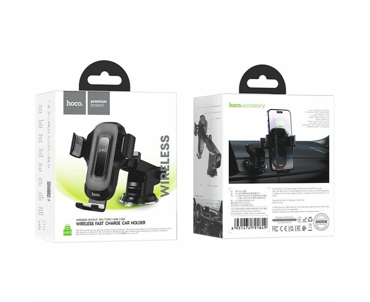 Автомобильный держатель HOCO HW3 Wise automatic induction wireless fast charging car (черный)
