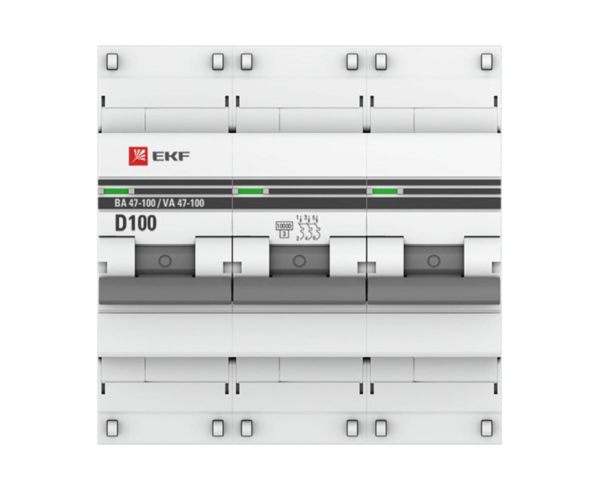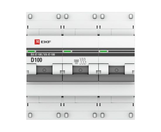 Автоматический выключатель EKF PROxima ВА 47-100 (mcb47100-3-100D-pro) 100А (D) 10kA 3P