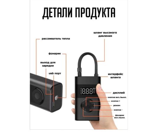 Тип: Автомобильный аккумуляторный насос-компрессор 2в1