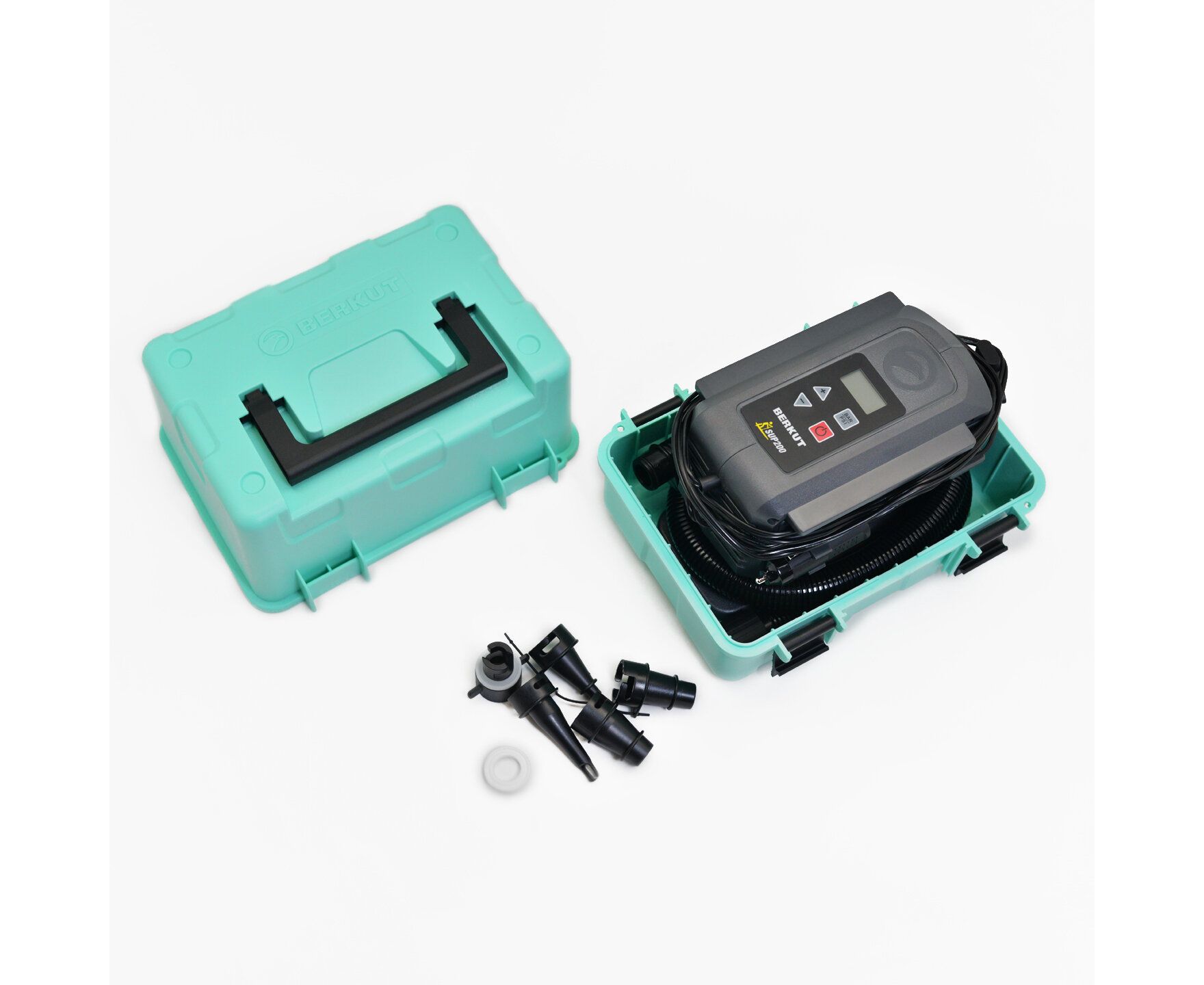 BERKUT SUP-200 предназначен для накачивания сапбордов, надувных лодок, каяков, байдарок, палаток, матрасов и т.п. Высокоэффективный двухпоршневой компрессор SUP-200 обеспечивает производительность до 180 л/мин (средняя скорость накачки Сапборда — 8-9 минут). Максимальное рабочее давление 20PSI (1,38bar) позволяет накачивать жесткие спортивные сапборды профессиональной серии. Удобное цифровое управление и манометр с функцией АВТОСТОП позволяет точно накачивать оборудование до выбранного давления. Эргономичный дизайн и интеграция в ударопрочный кейс со специальной ручкой для переноски позволяет не тратить длительное время на разворачивание системы. Набор различных насадок 5 шт. для накачивания различных надувных изделий (Сапы, лодки, каяки, палатки, матрасы и т.п.). Компрессор работает от бортовой розетки 12V и потребляет не более 12-13A (Допускается подключение к ПЗУ BERKUT серии JSL и PSL)