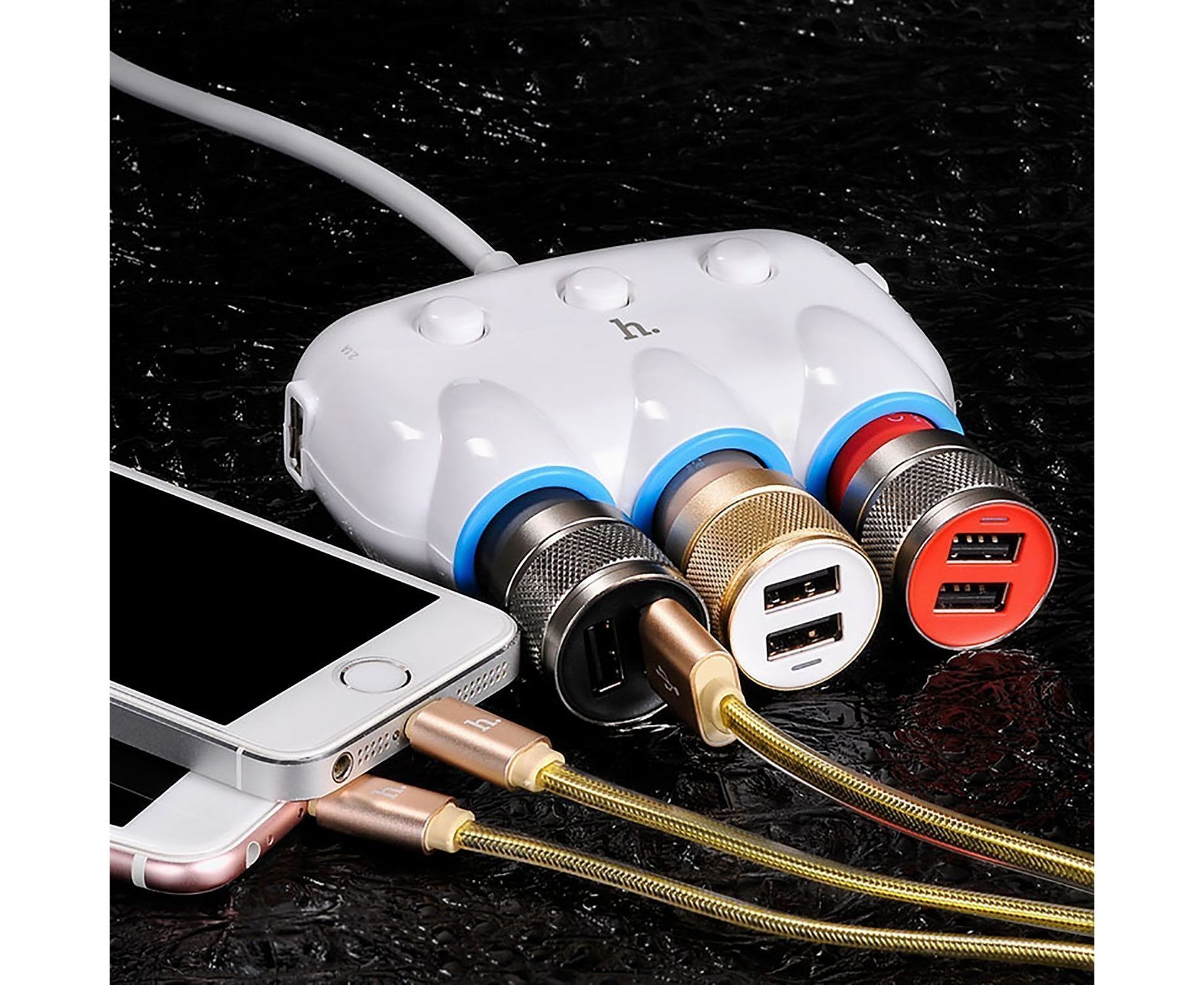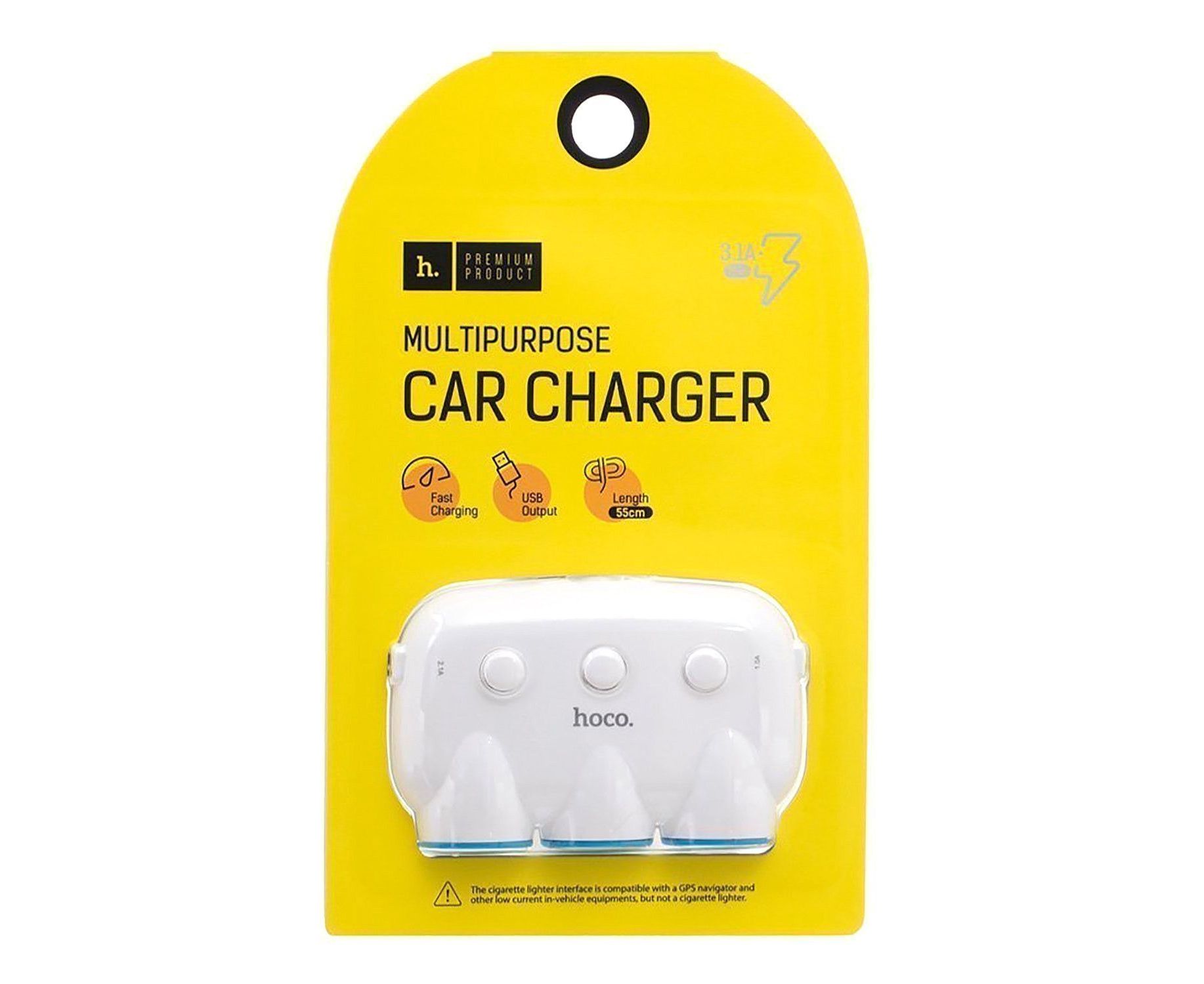 Автомобильный разветвитель прикуривателя Hoco C1 3in1 2USB (white) (102273)