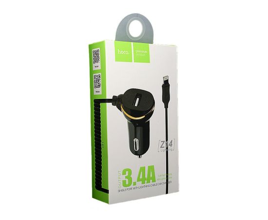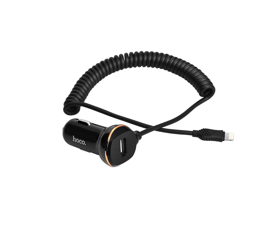 Автомобильное зарядное устройство Hoco Z14 lightning - это адаптер классического типа со встроенным кабелем lightning. Значение силы тока на выходе usb разъема 3,4 A. Корпус выполнен в классической цветовой гамме с элементами золотистых вставок. Зарядное устройство позволяет осуществить быструю зарядку на телефонах поддерживающих данную функцию. Универсальный USB порт совместим с любым кабелем и позволяют заряжать любое устройство.