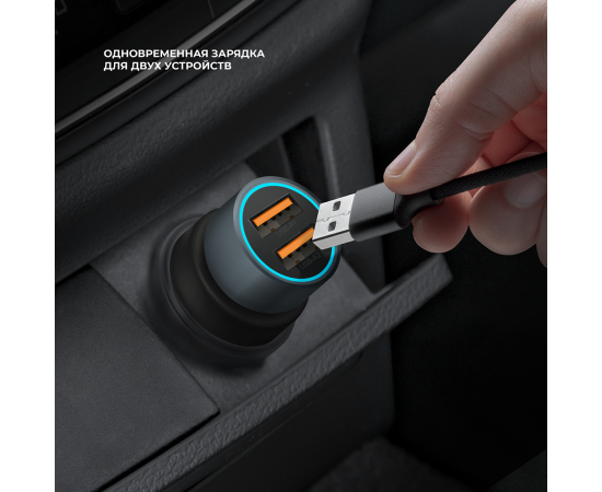 AЗУ 2xUSB-A, QC 3.0, 36W, металл, серый, Deppa