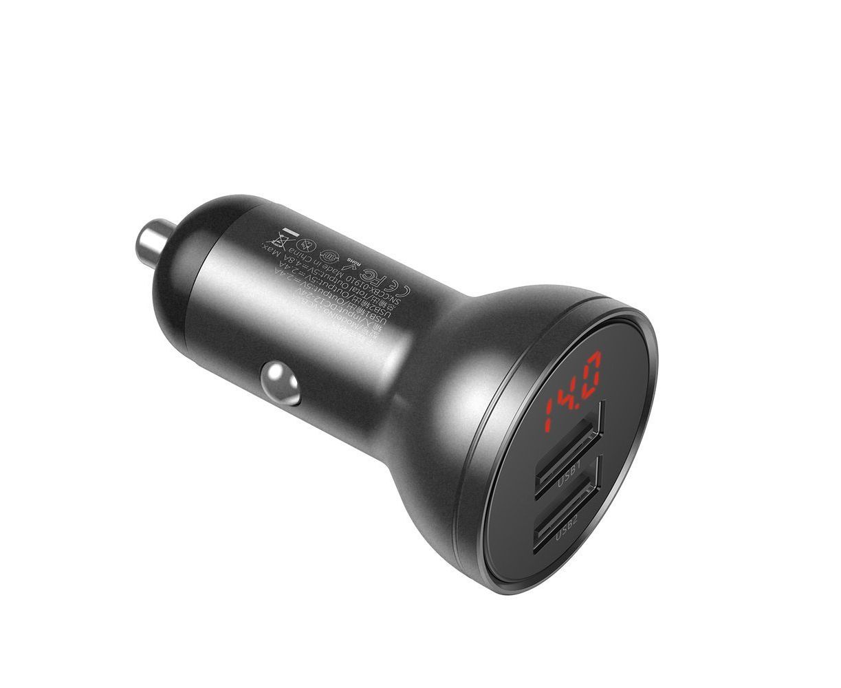 АЗУ Baseus (CCBX-0G) Digital Display 2USB 4.8A Car Charger 24W Grey